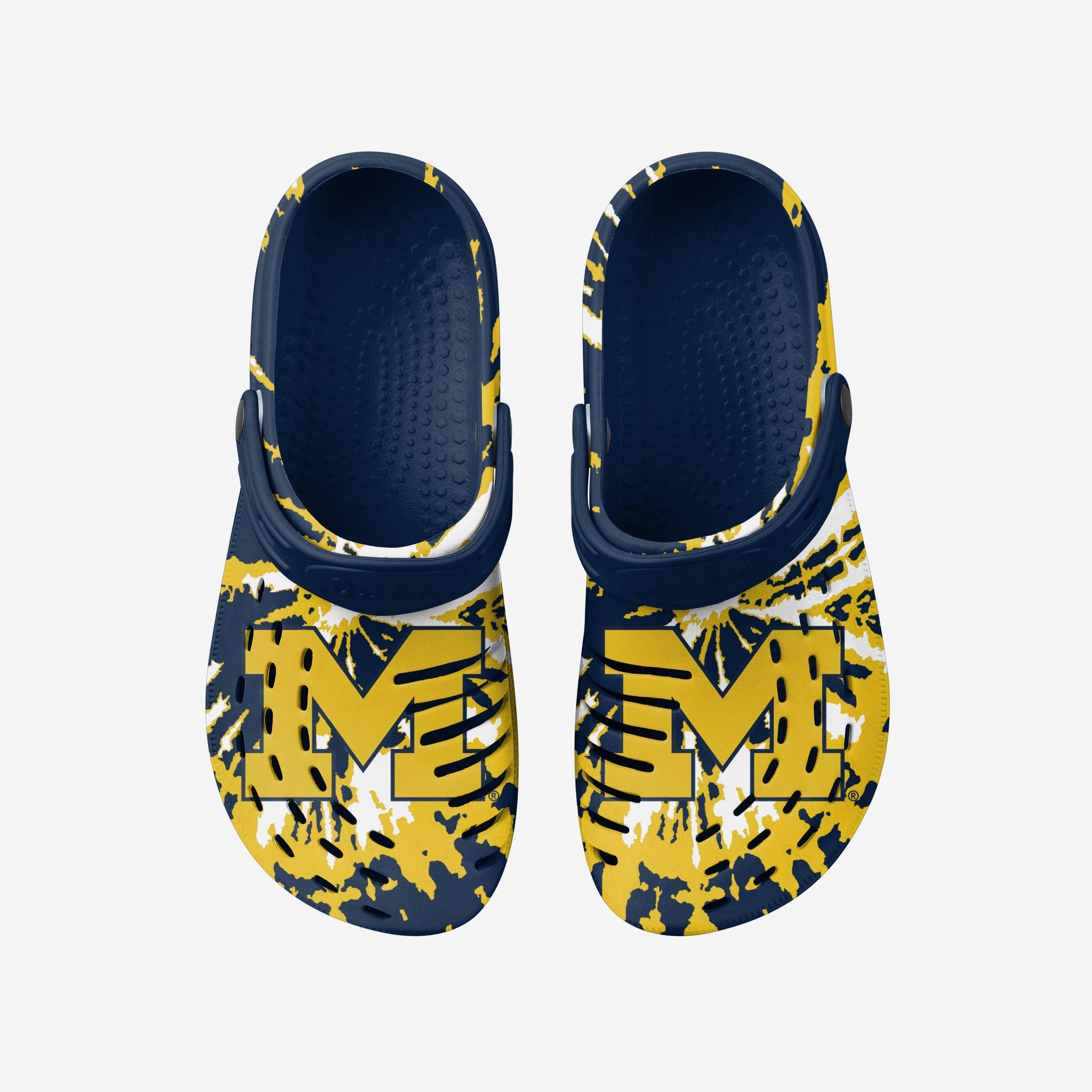 Enjoy a heaping helping of groovy goodness by standing out in these Michigan Wolverines Tie-Dye Clogs with Straps.