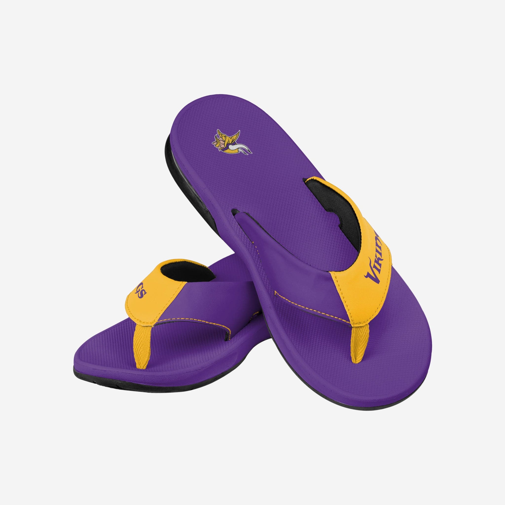They may be flip flops, but they're the furthest thing from a flop. Your fashion must-haves for beach days and gamedays alike have arrived with these Minnesota Vikings Team Color Contour Flip Flops.
