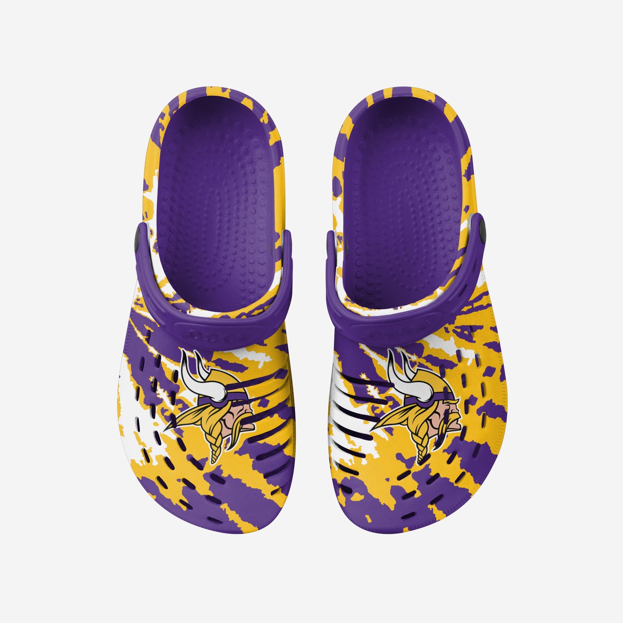 Enjoy a heaping helping of groovy goodness by standing out in these Minnesota Vikings Tie-Dye Clogs with Straps.