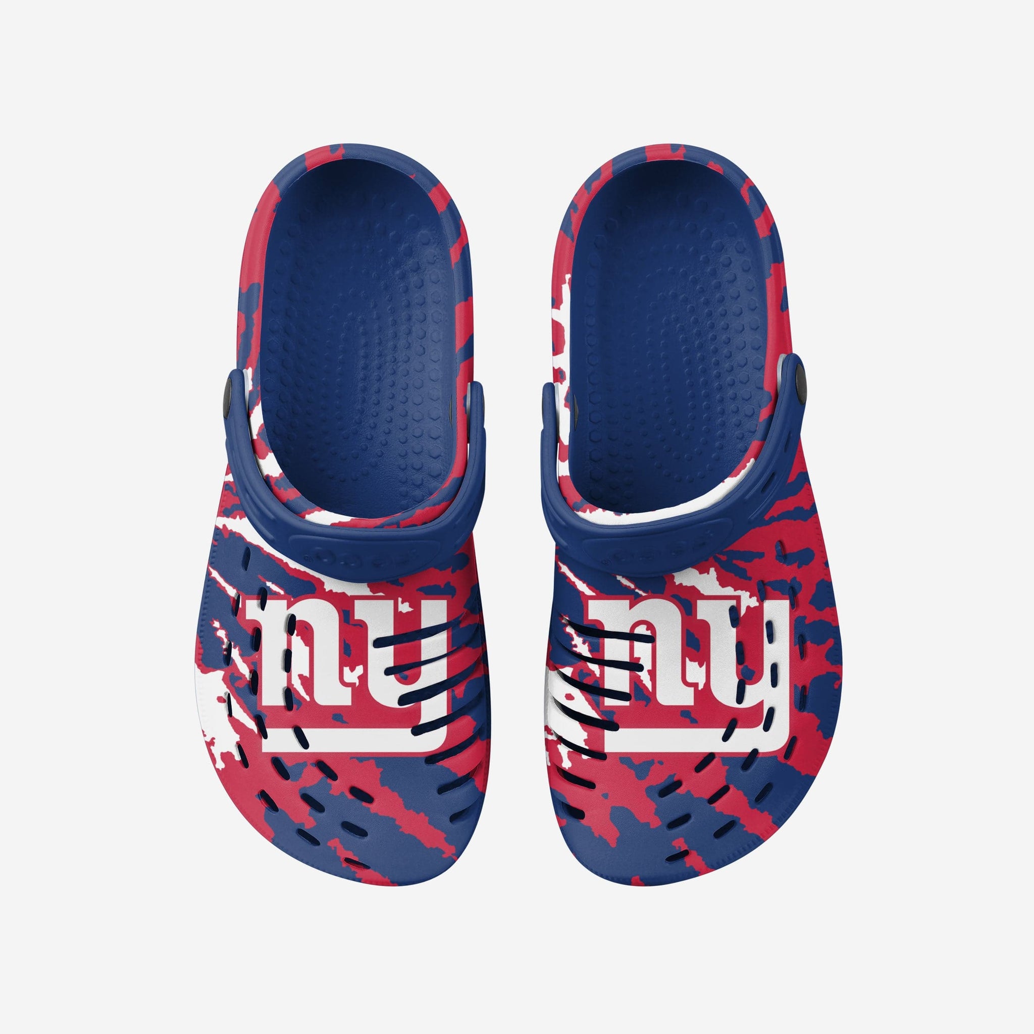 Enjoy a heaping helping of groovy goodness by standing out in these New York Giants Tie-Dye Clogs with Straps.