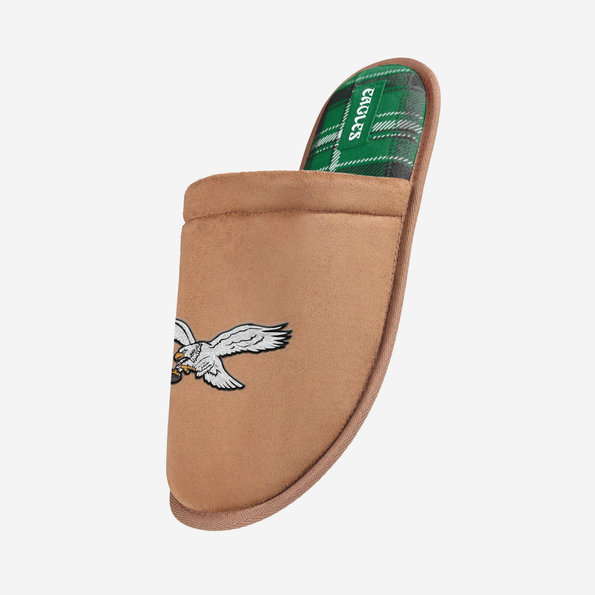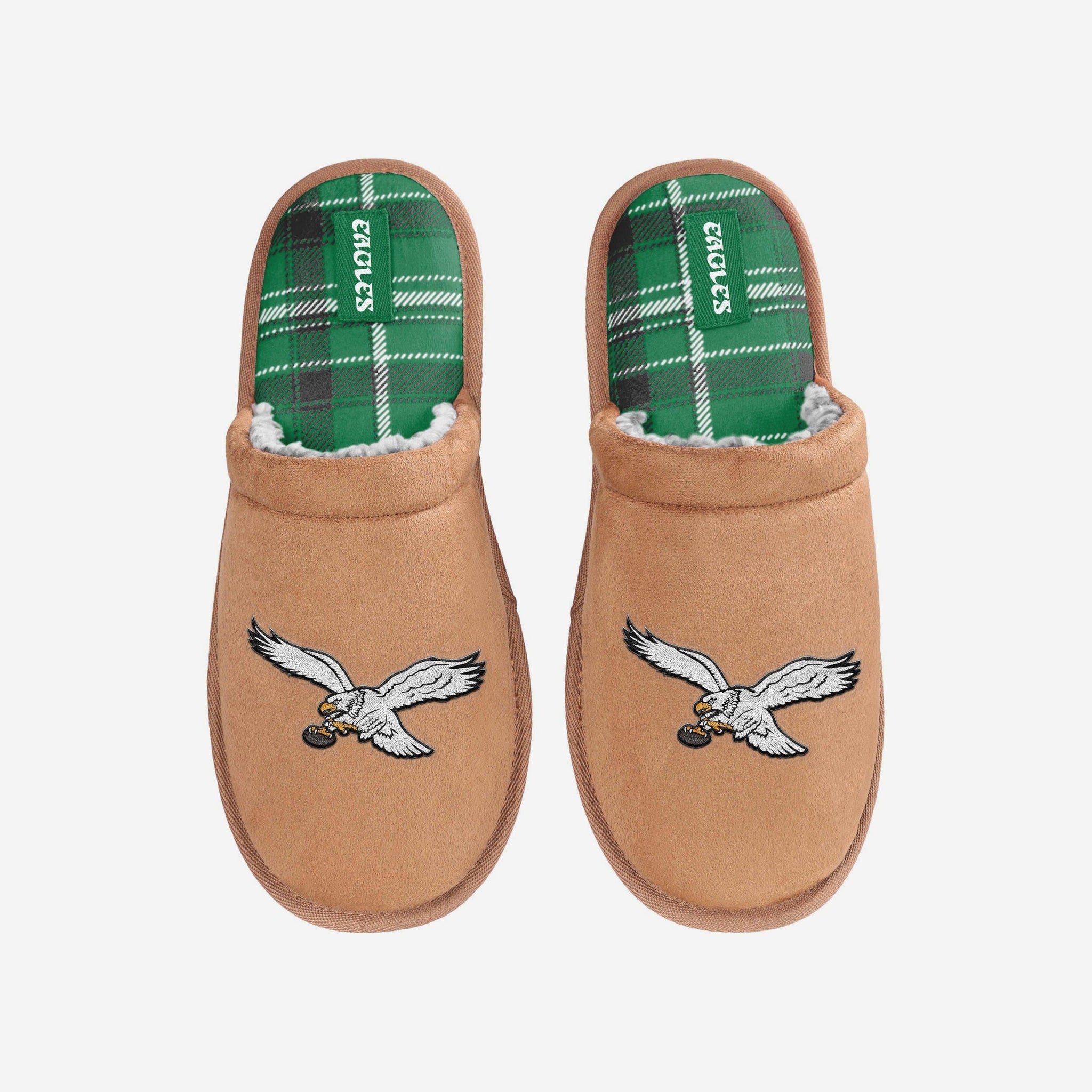 Philadelphia Eagles Kelly Green Flannel Lined Brown Suede Scuff Slipper FOCO S - FOCO.com