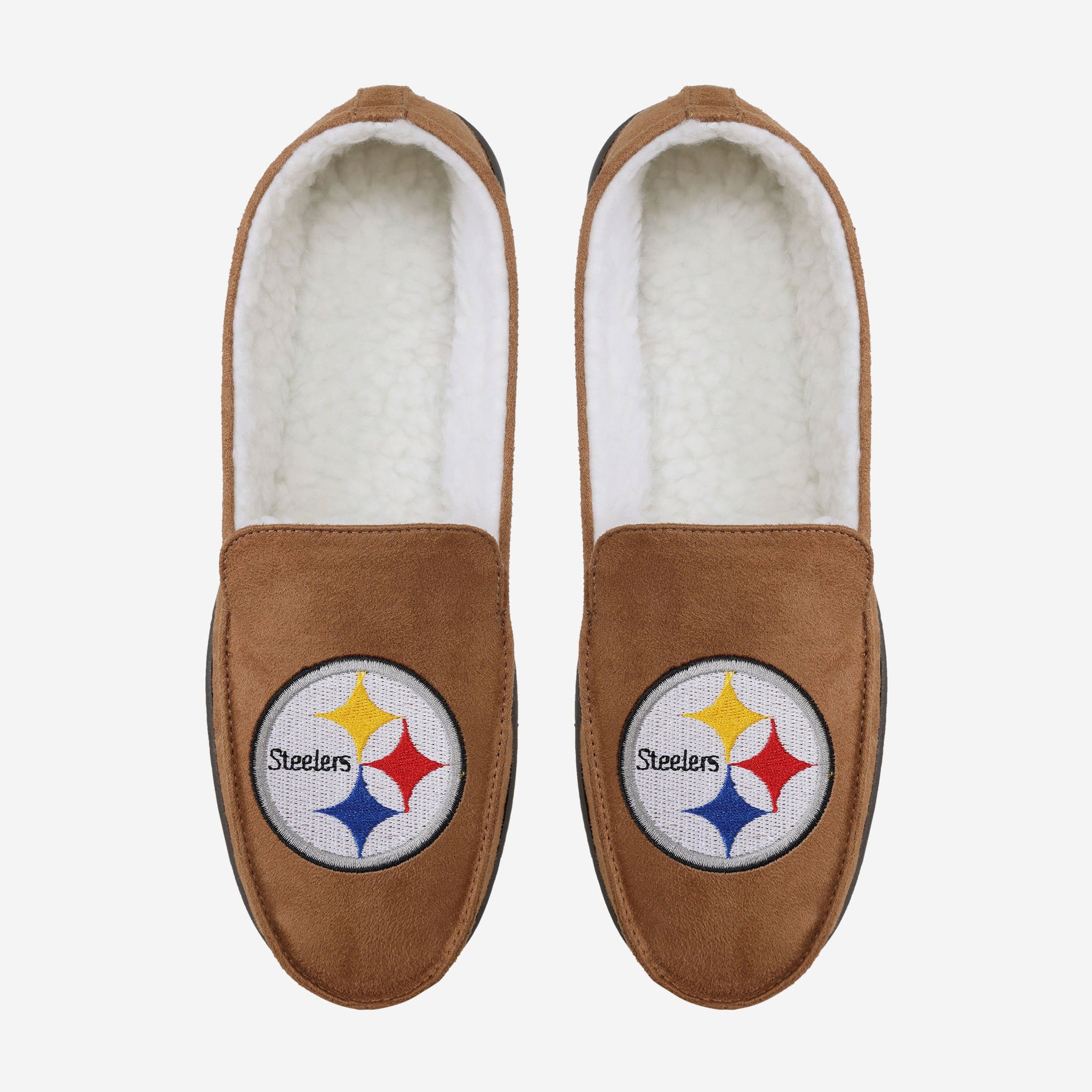 We all enjoy the occasional midnight snack. There's no shame in housing a pint of ice cream at 2:00am. The only thing that would be embarassing about it is if you did it without the style and comfort of walking to the kitchen in these Pittsburgh Steelers Beige Moccasin Slippers.