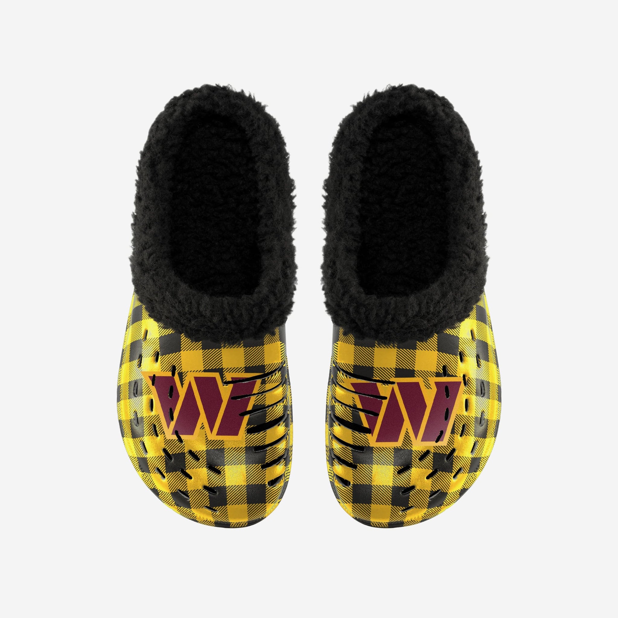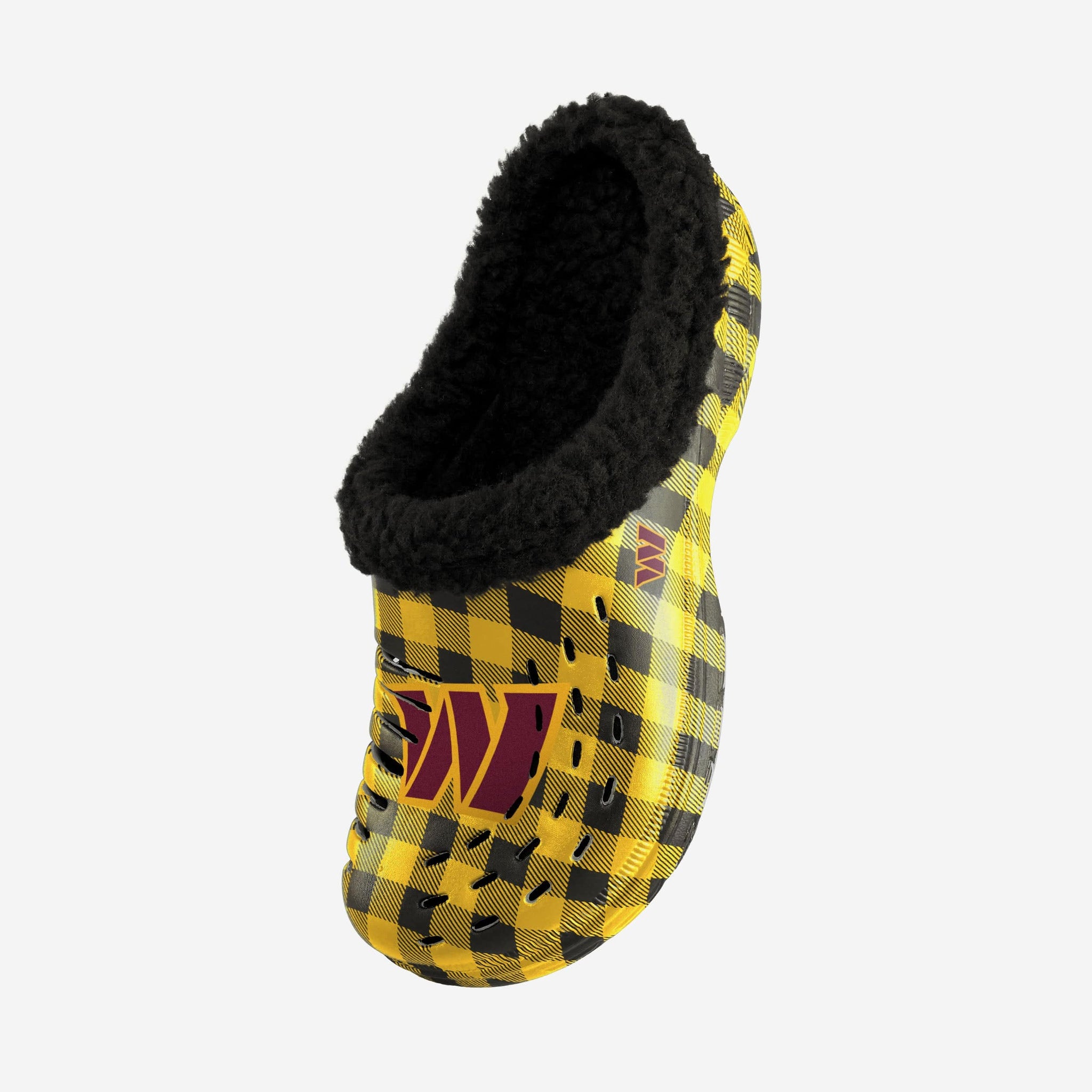 Say hello to a blank check of fashionable fandom. Make sure everyone is checking you out when you rep the team in every step of these Washington Commanders Sherpa Lined Buffalo Check Clogs!
