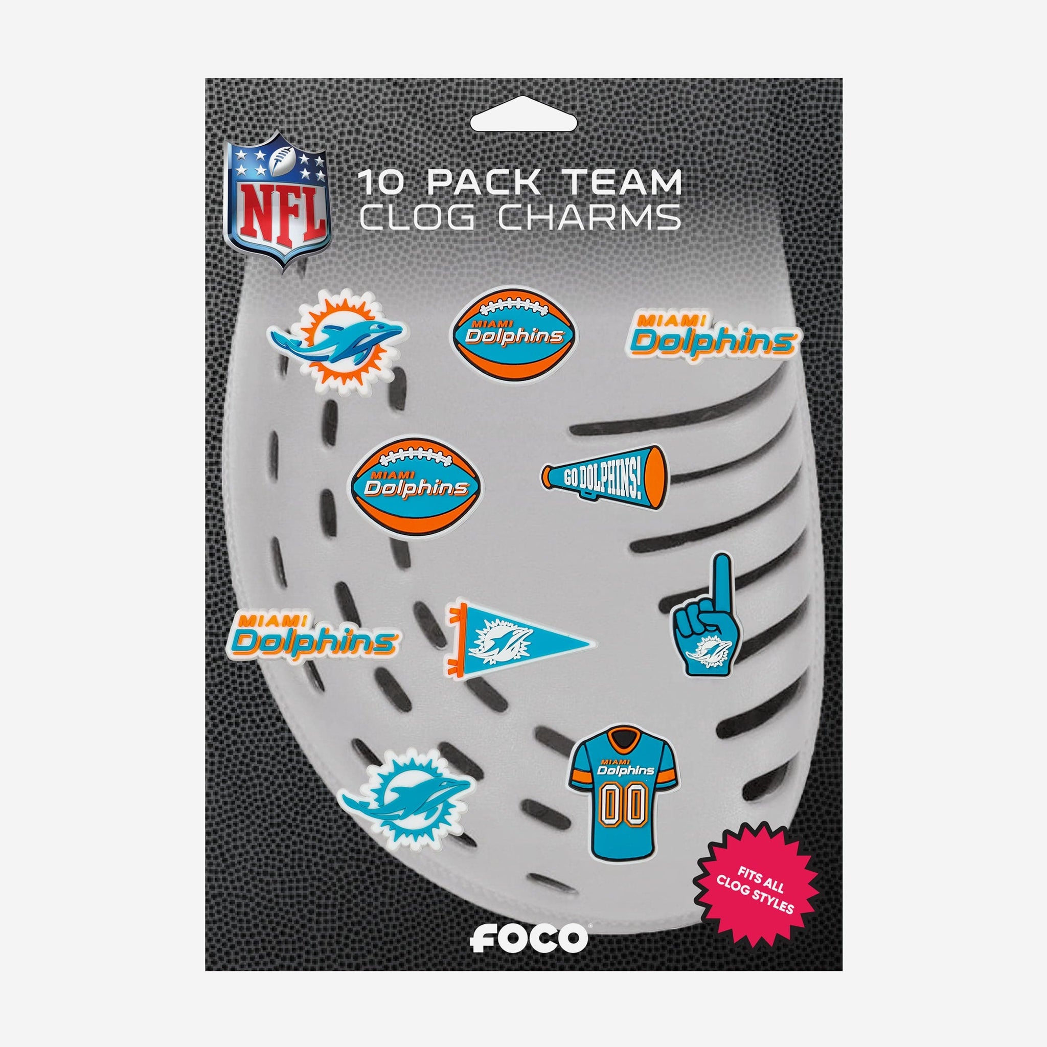 These Miami Dolphins 10 Pack Team Clog Charms are a perfect ten. Step up your clog style game in a whole new way.