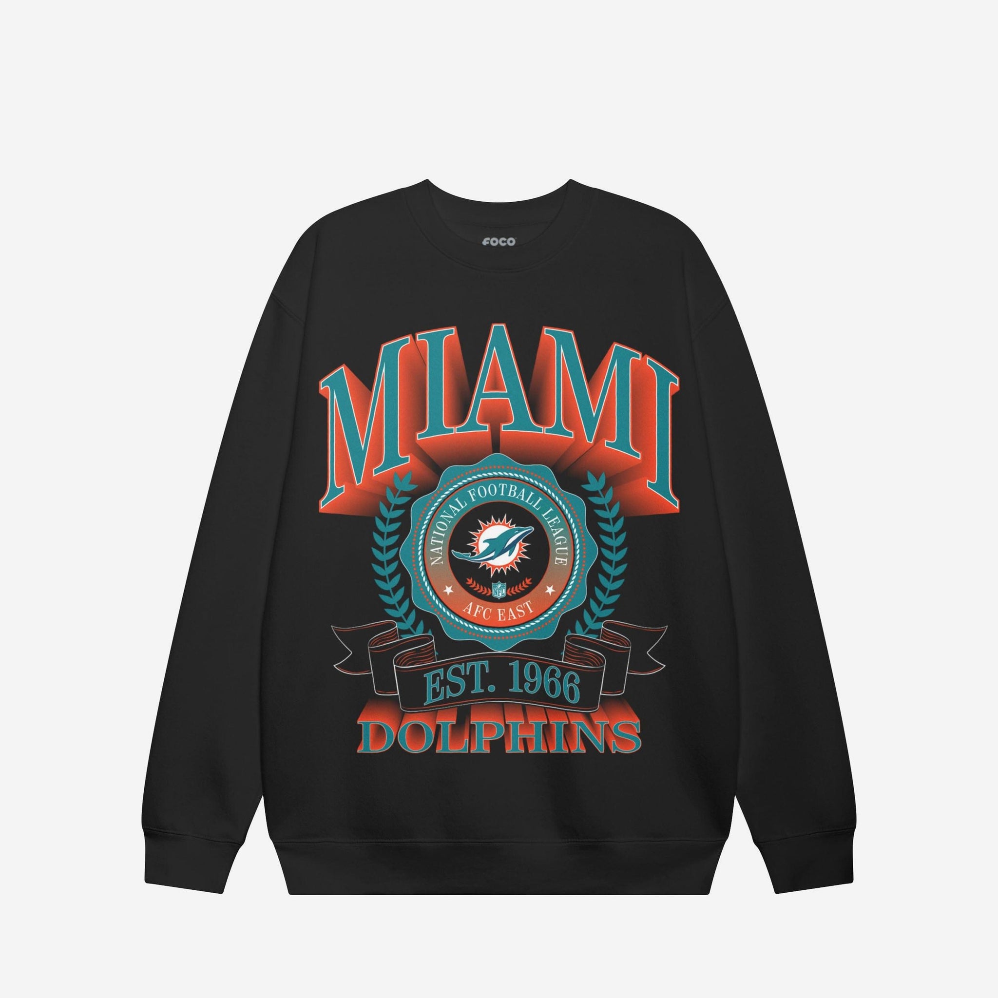 Miami Dolphins Banner Crest Crew Neck Sweatshirt FOCO Black S - FOCO.com