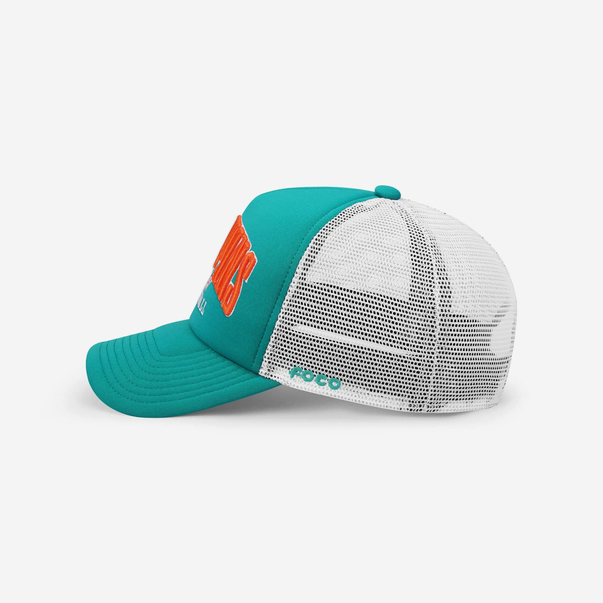 Whether you're behind the wheel of a big rig or in the stands at the game, this Miami Dolphins Foam Trucker Cap is just the thing for your outfit. Featuring an embroidered team logo and wordmark display and unstructured design with a curved visor and high crown, you’ll be all set to play the role of trucker and fan. Plus, the mesh panels and adjustable snapback snap closure makes this hat perfect for any adventure.