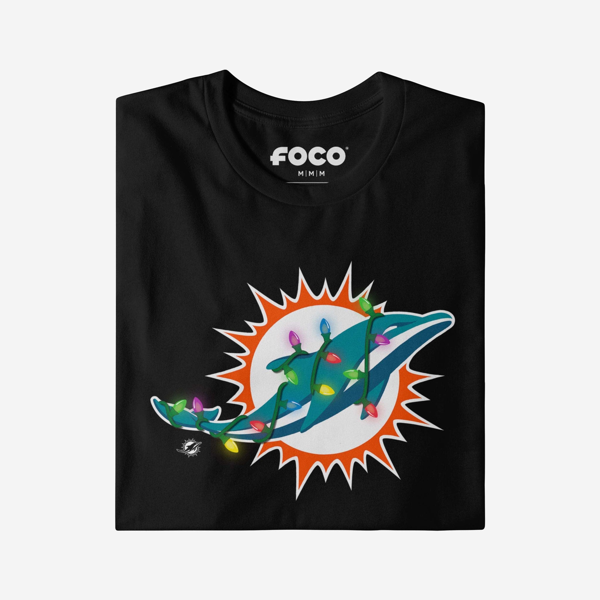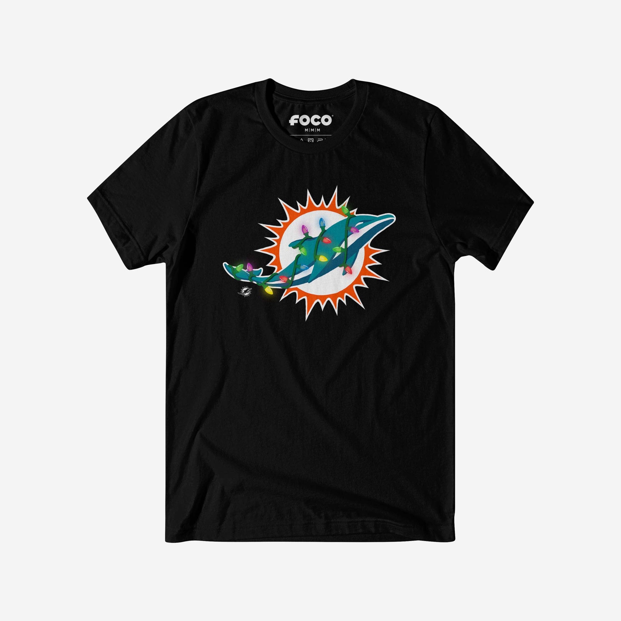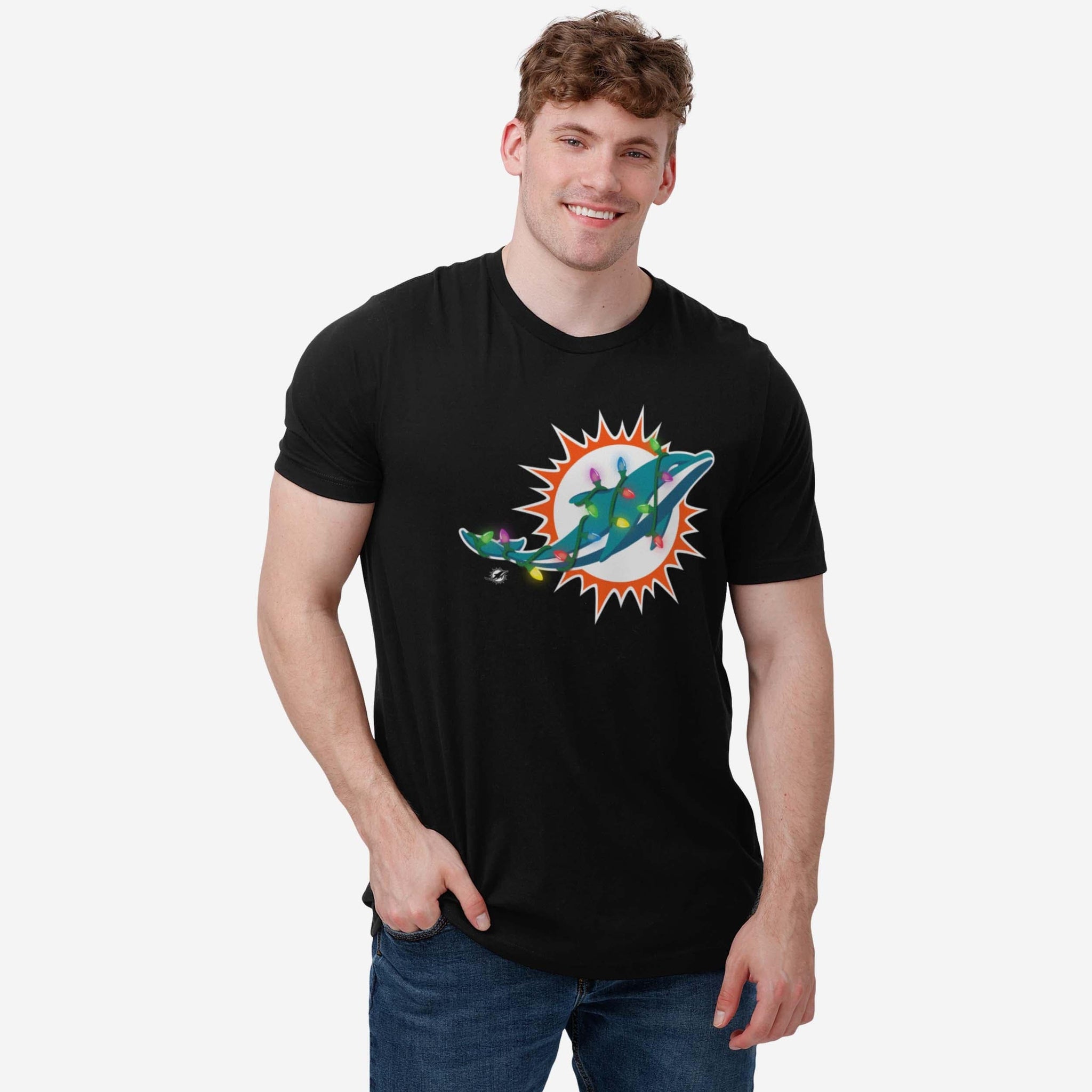 Merry, bright, and full of team spirit! Let your fandom light the way to a legendary holiday season with this Miami Dolphins Primary Logo Holiday Lights T-Shirt.