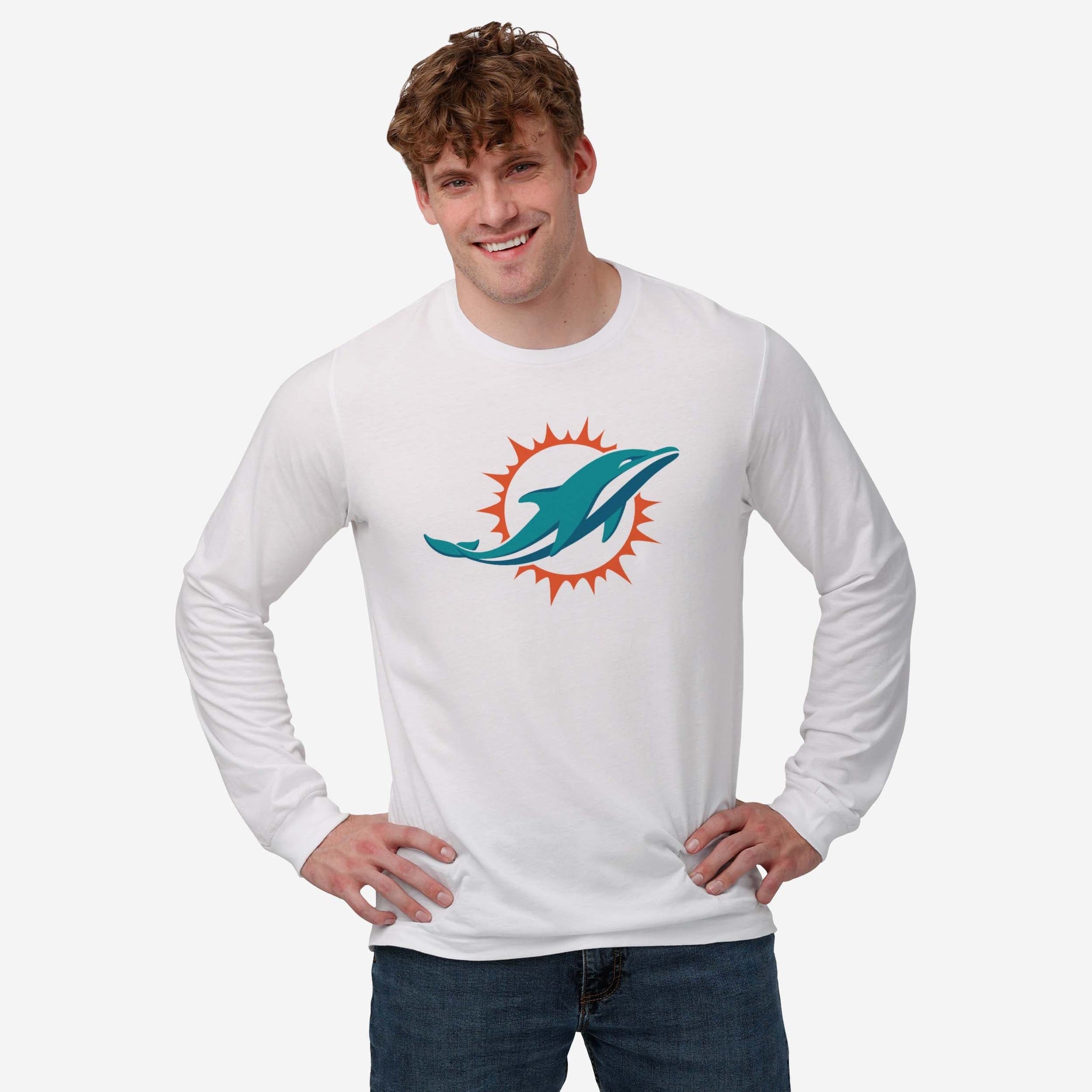 Miami Dolphins Primary Logo Long Sleeve T-Shirt FOCO White S - FOCO.com
