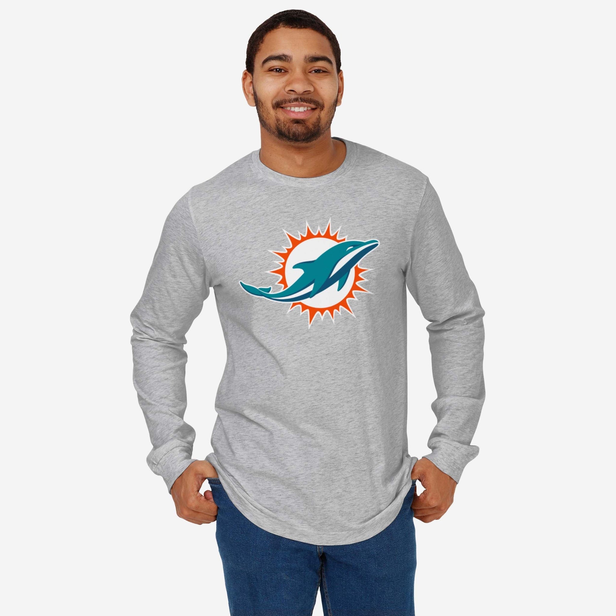 Miami Dolphins Primary Logo Long Sleeve T-Shirt FOCO Athletic Heather S - FOCO.com