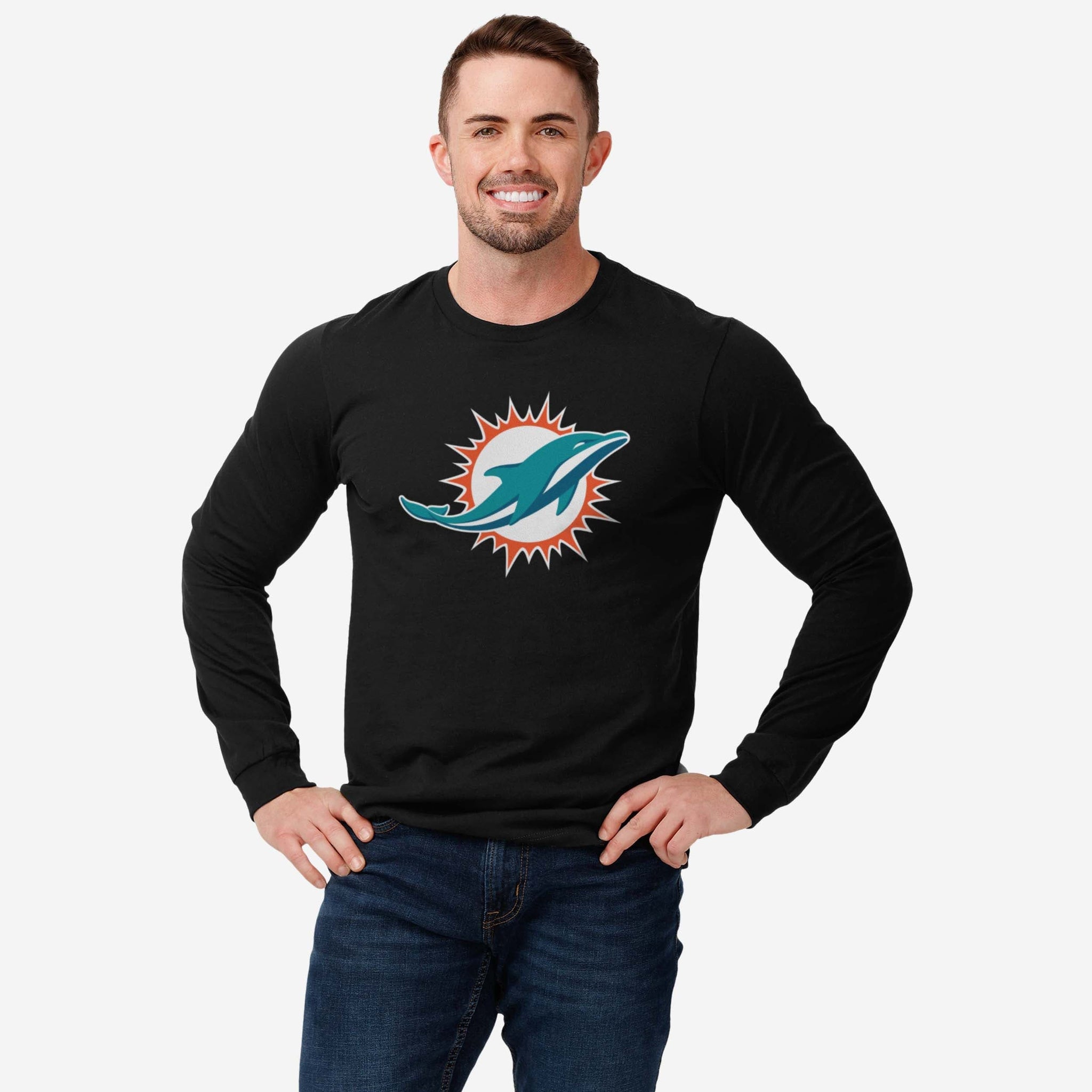 You’re the best fan. You could use a shirt that shows off the ultimate team pride. Look no further than this Miami Dolphins Primary Logo Long Sleeve T-Shirt! Get ready to be the star of every tailgate group picture and MVP of the in-game jumbotron.
