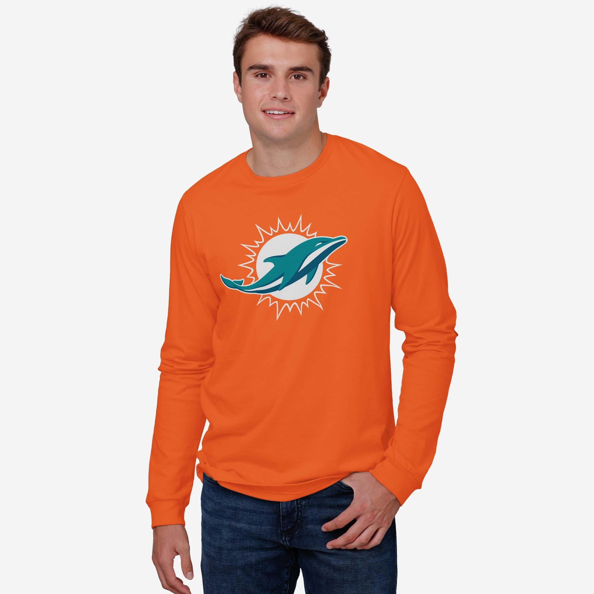 Miami Dolphins Primary Logo Long Sleeve T-Shirt FOCO Orange S - FOCO.com