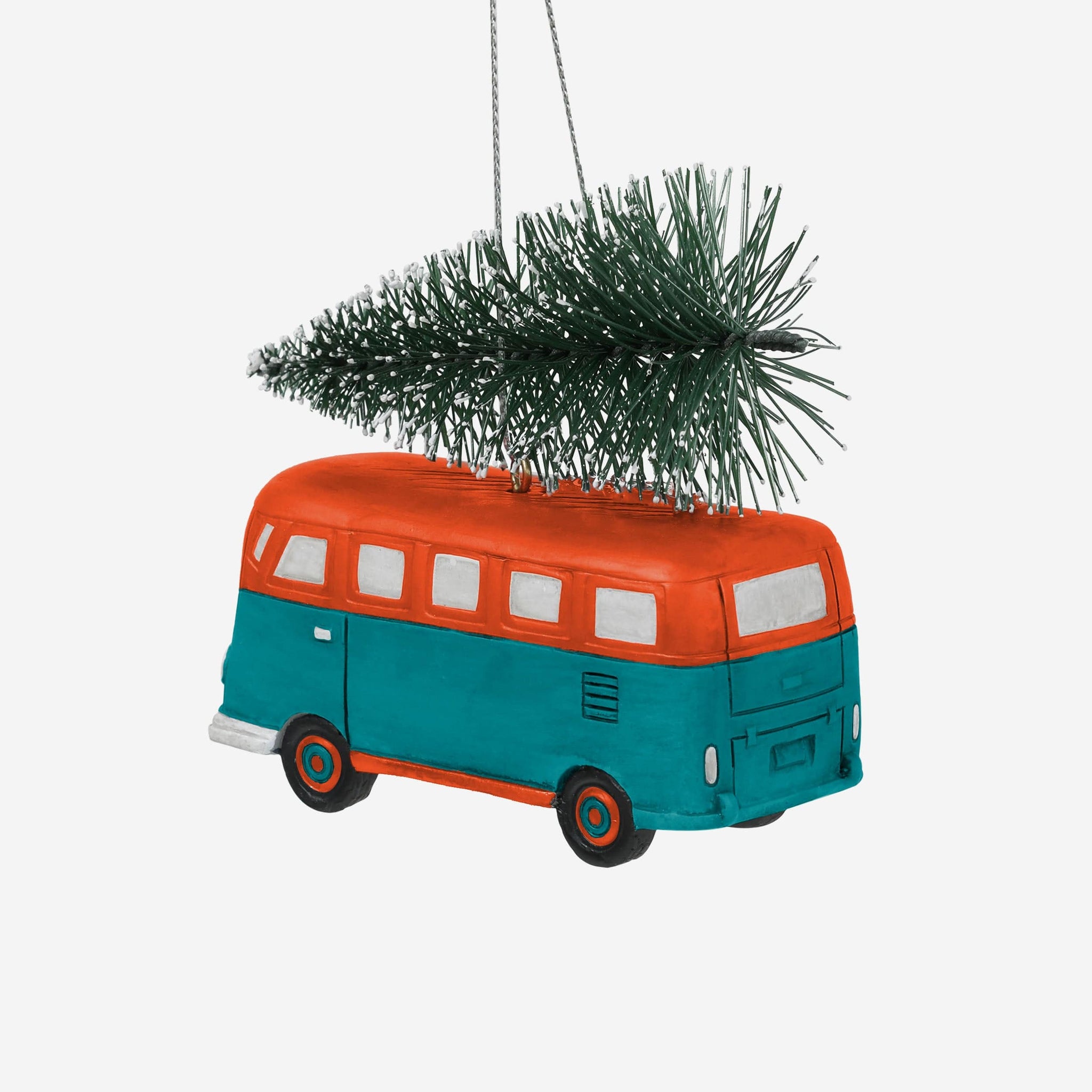 - Team-colored retro bus with Christmas tree and wreath accents to get you in the holiday spirit