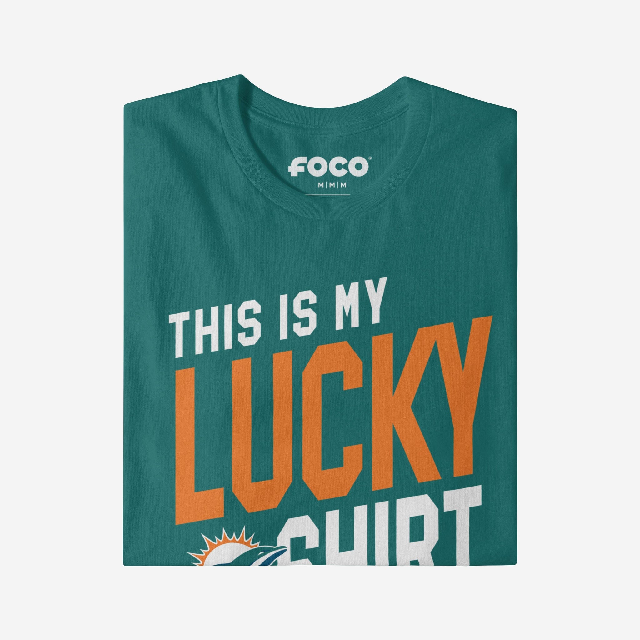 This top features a team logo display and a “THIS IS MY LUCKY SHIRT” text display, meaning this t-shirt will prove your unmatched dedication to the Miami Dolphins when you’re at the game, out on the town, or watching at home with your friends. No matter where you go, you’ll always have a little luck on your side.