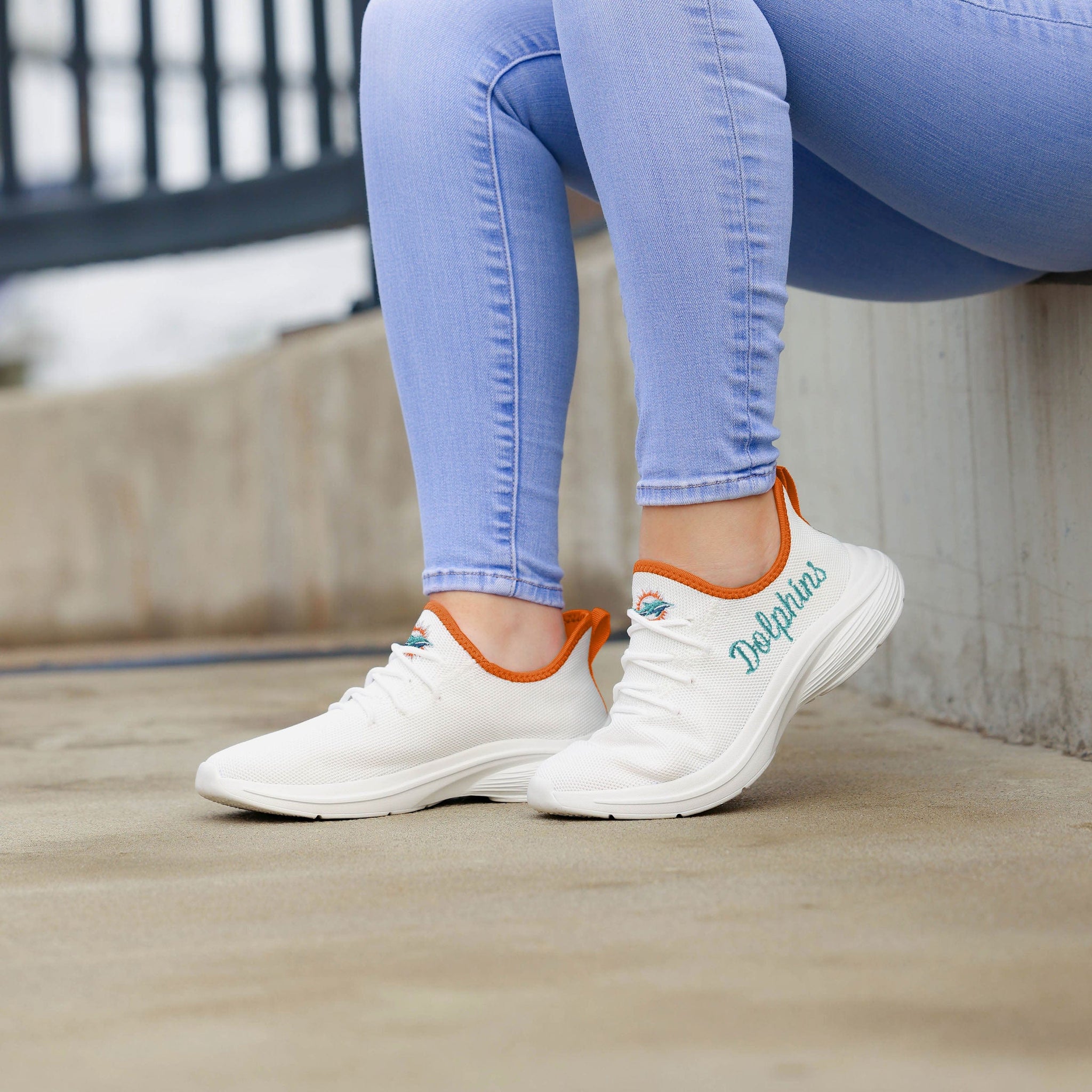These Miami Dolphins Women's Midsole White Sneakers will make sure everyone knows that you're the heart and midsole of your fanbase.