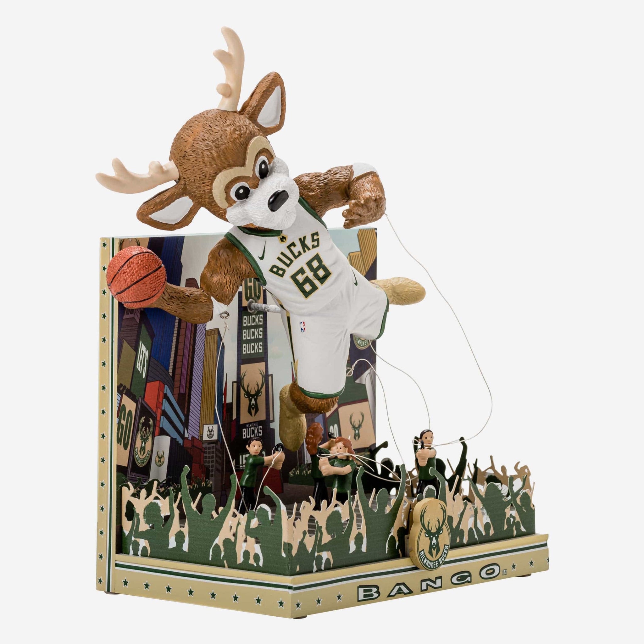 Gobble gobble? Bobble bobble. No need to plan a trip - The parade route is making a stop in your fancave. Feast on some fandom and be the grand marshal of your celebration with this Bango Milwaukee Bucks Parade Float Mascot Bobblehead!