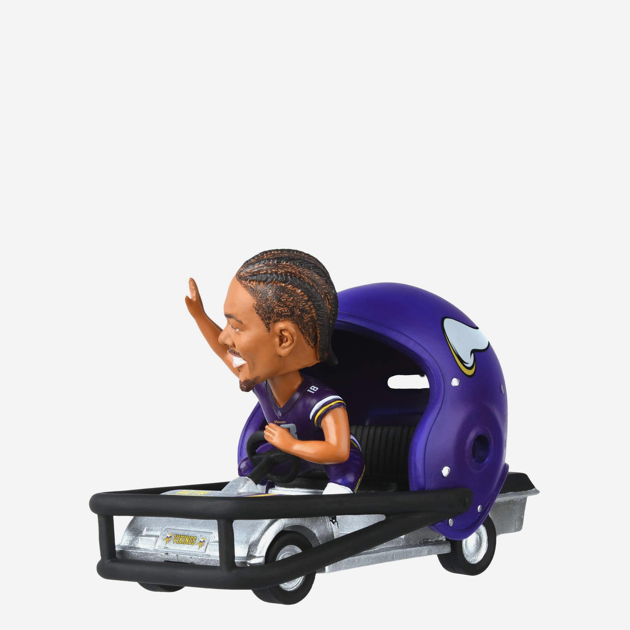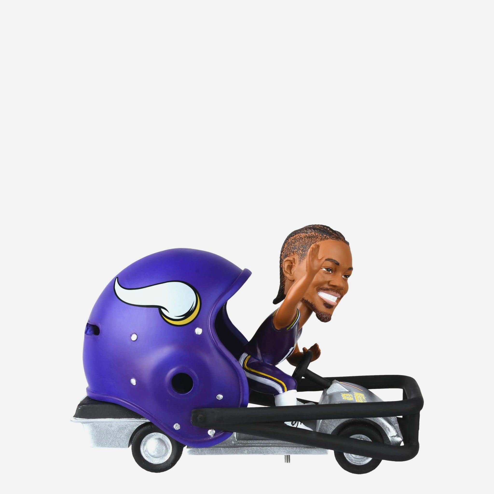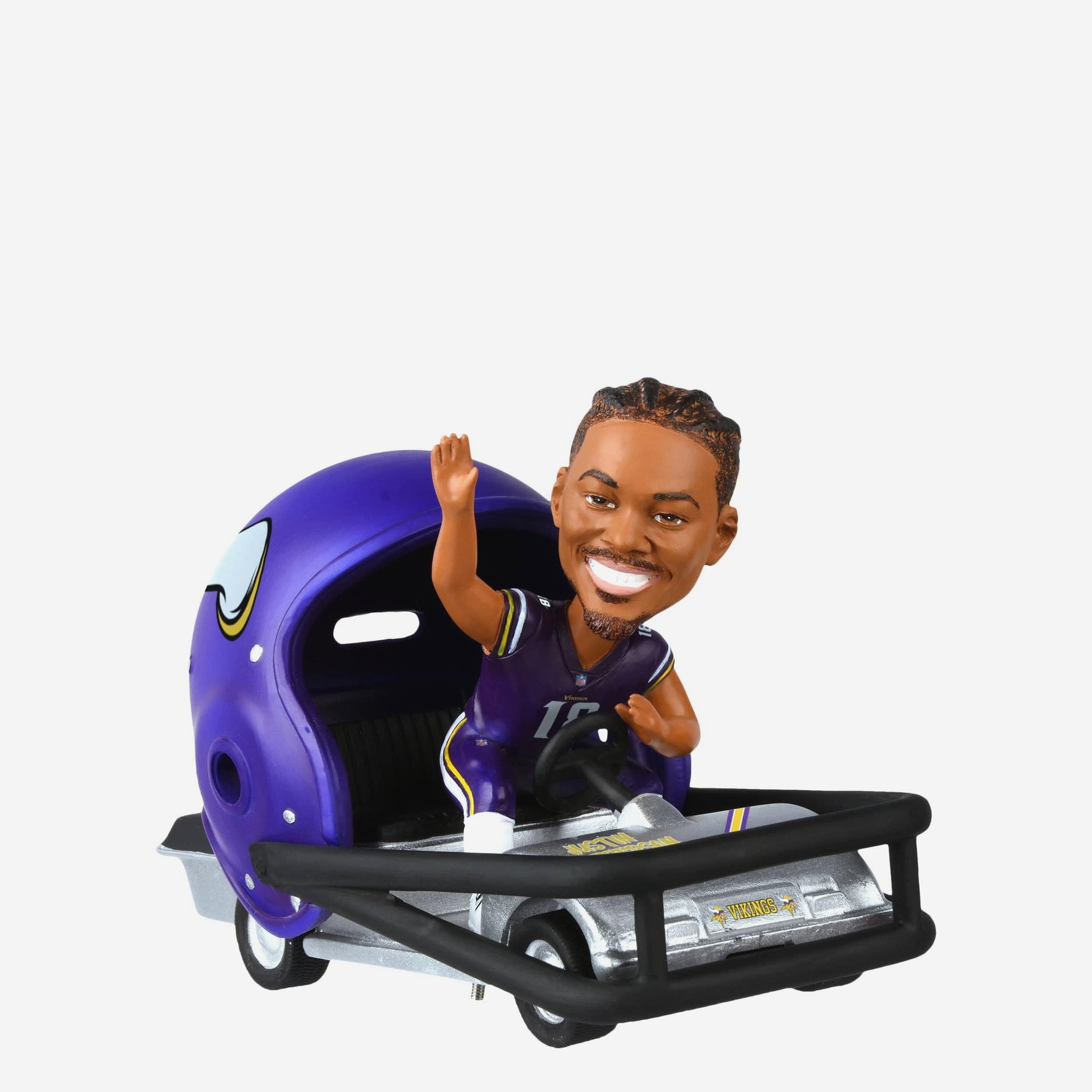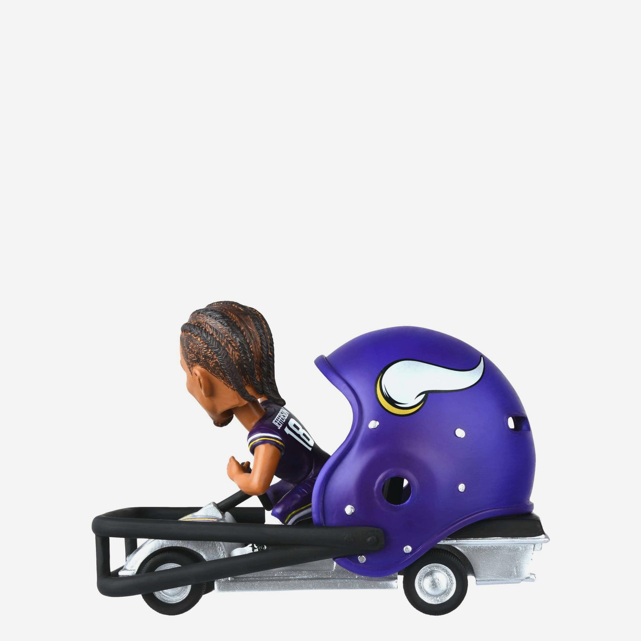 Ready, set, bobble! The Justin Jefferson Minnesota Vikings Helmet Cart Bobblehead is here to drive your fandom straight into the end zone.