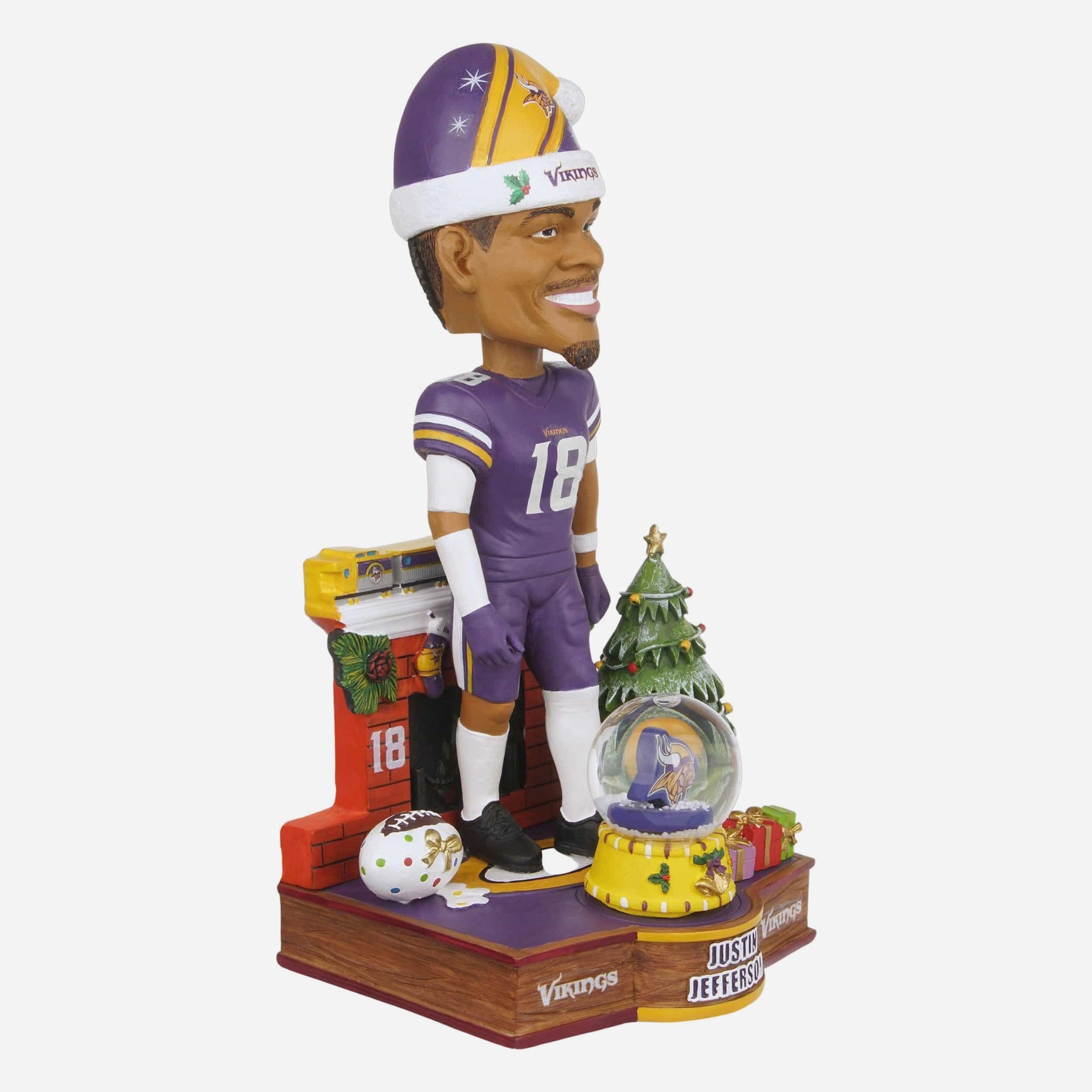 Celebrate the magic of the season with this Justin Jefferson Minnesota Vikings Snow Globe Series Bobblehead, a festive collectible that brings wintry charm and cozy spirit to any holiday display.