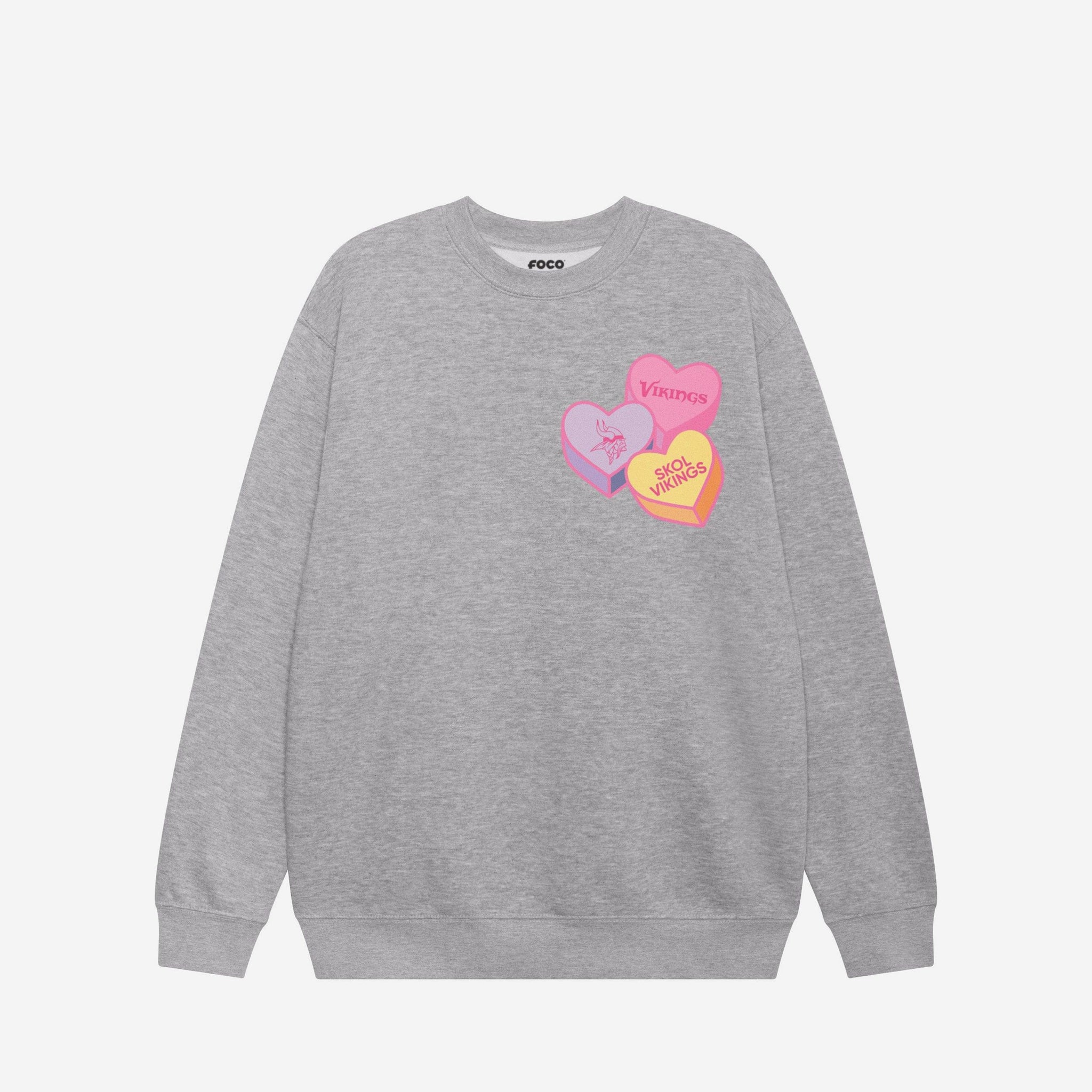 Minnesota Vikings Candy Heart Crew Neck Sweatshirt FOCO Athletic Heather S - FOCO.com