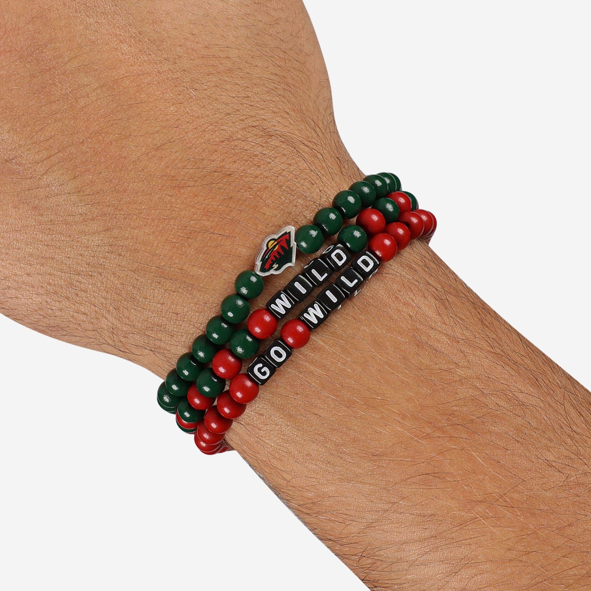 A whole new way to rep the team in style is here. Step up your fan fashion sense with this Minnesota Wild 3 Pack Beaded Friendship Bracelet. These matching friendship bracelets have an all-over team-colored design and team logo displays, which makes them the perfect way to show your support for the Minnesota Wild on gamedays and every day in between.