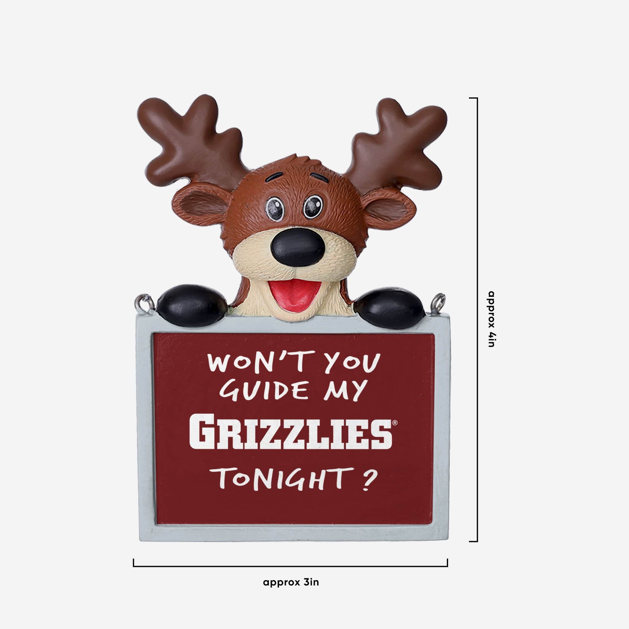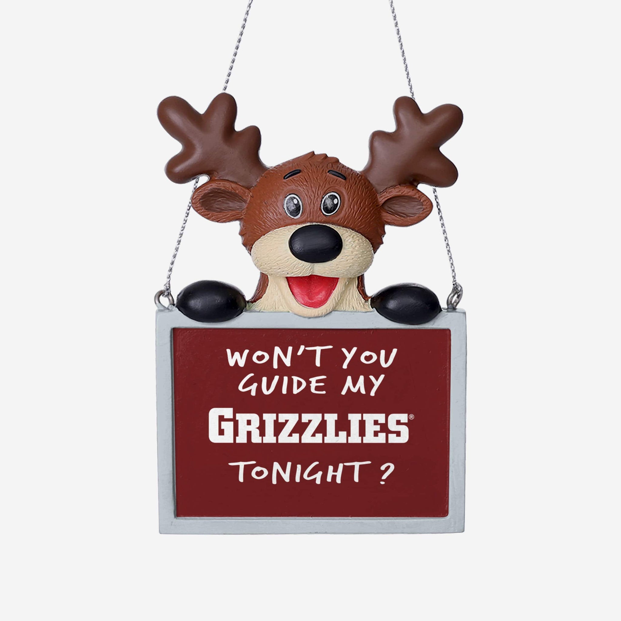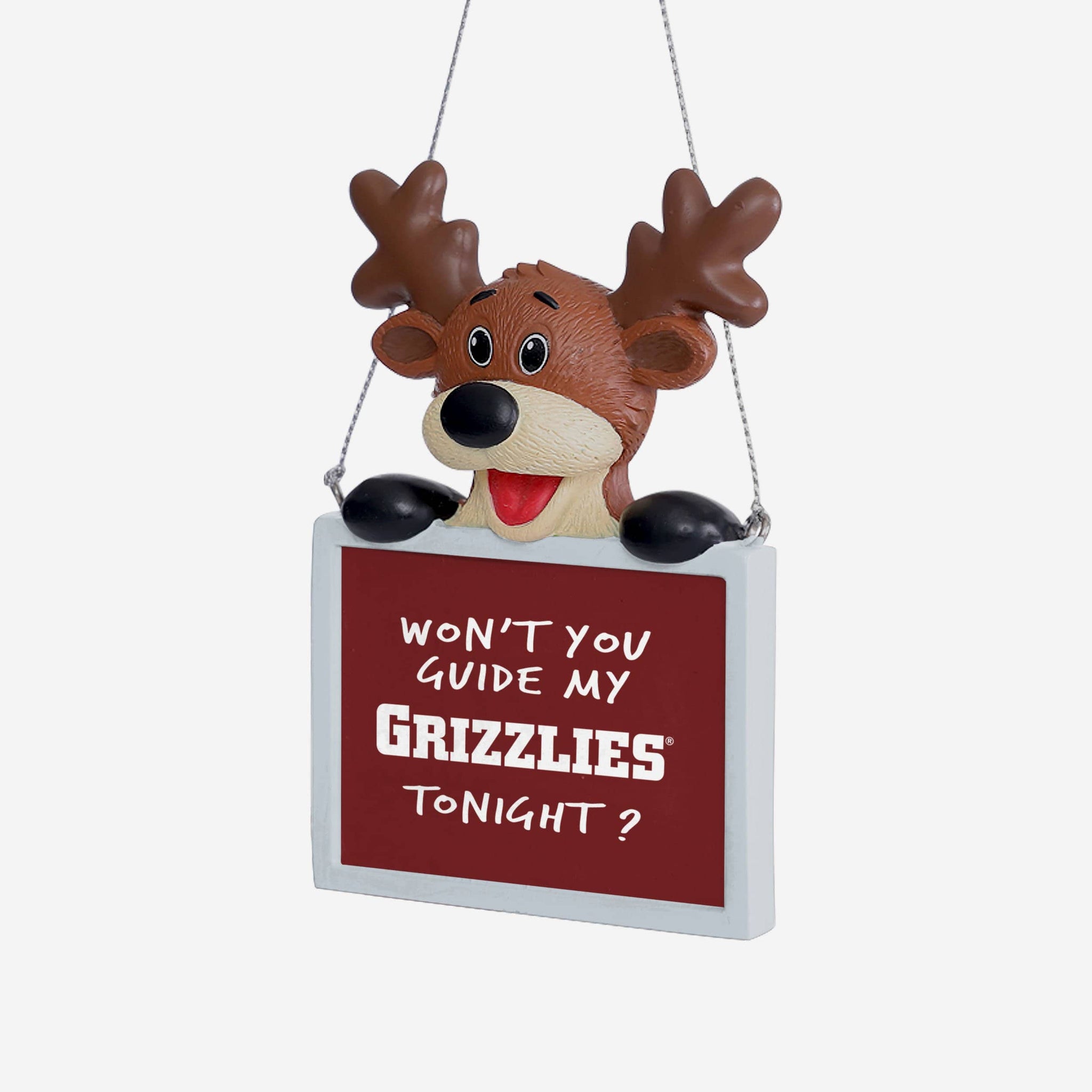 Tired: Dasher. Dancer. Prancer. Vixen. Wired: This Montana Grizzlies Reindeer with Sign Ornament.