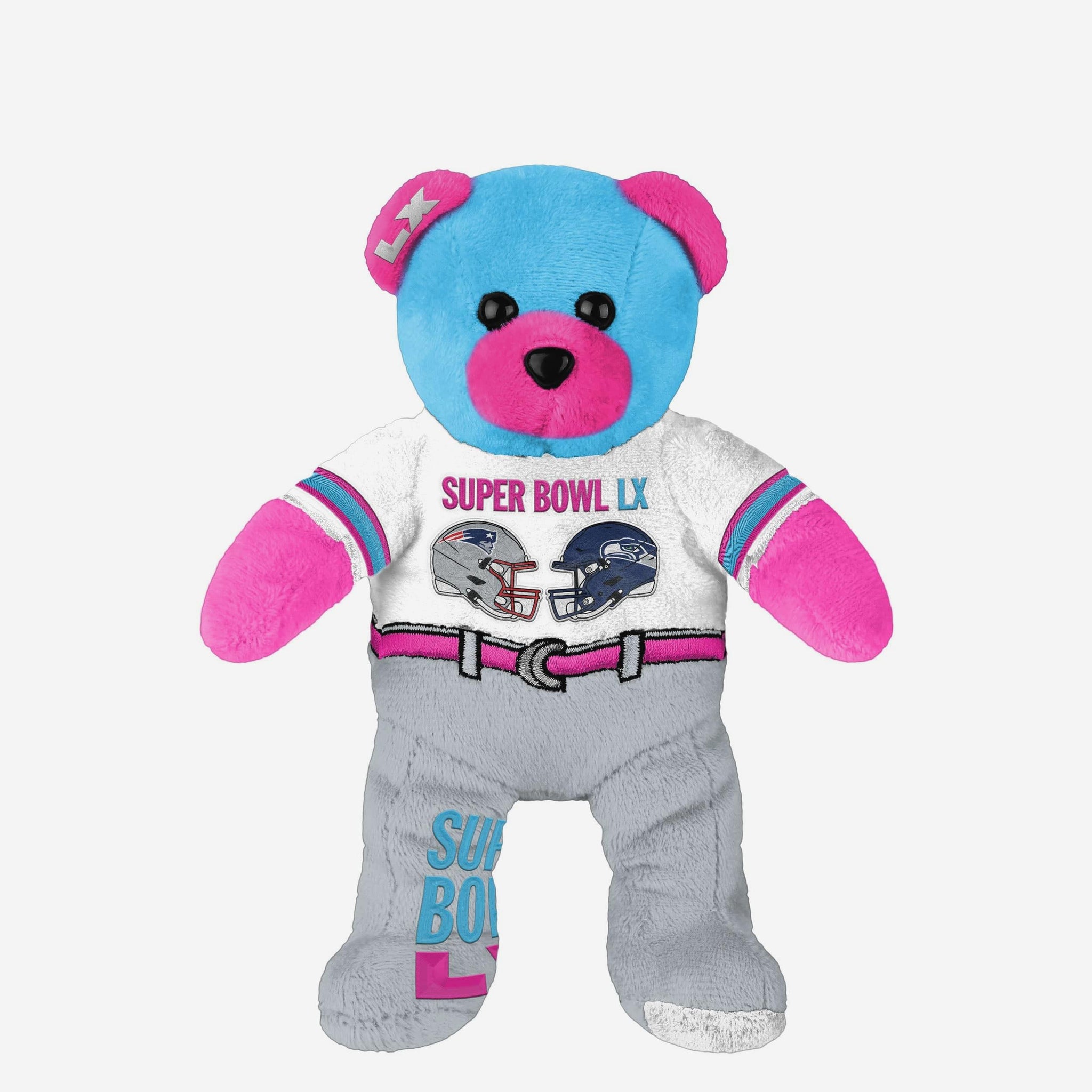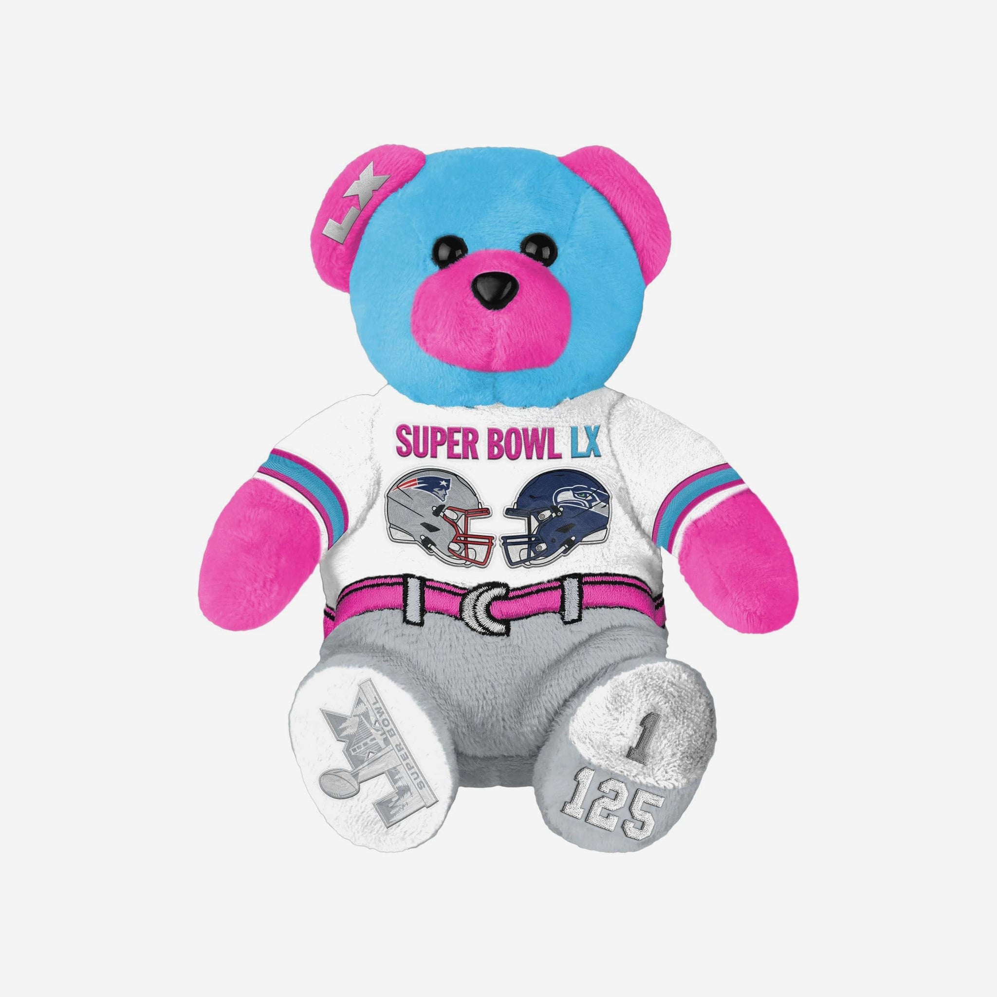 - Plush bear with all-over Super Bowl LX–themed design celebrating the championship matchup