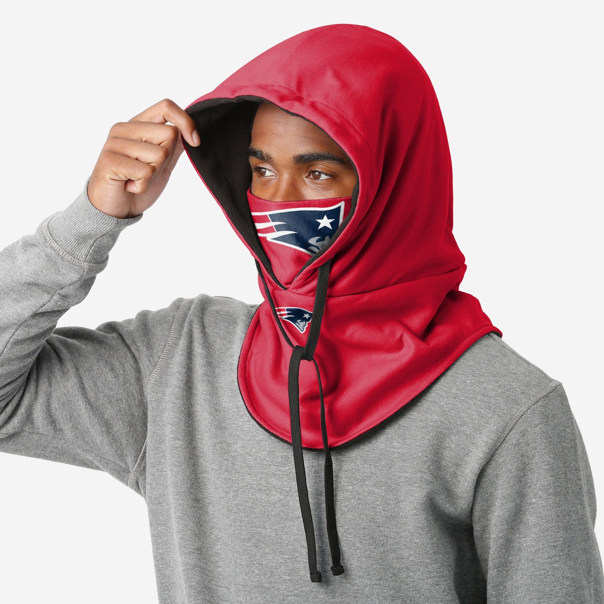 Oh, the weather outside is frightful. But bundling up in the New England Patriots Alternate Team Color Drawstring Hooded Gaiter? That's oh, so delightful.