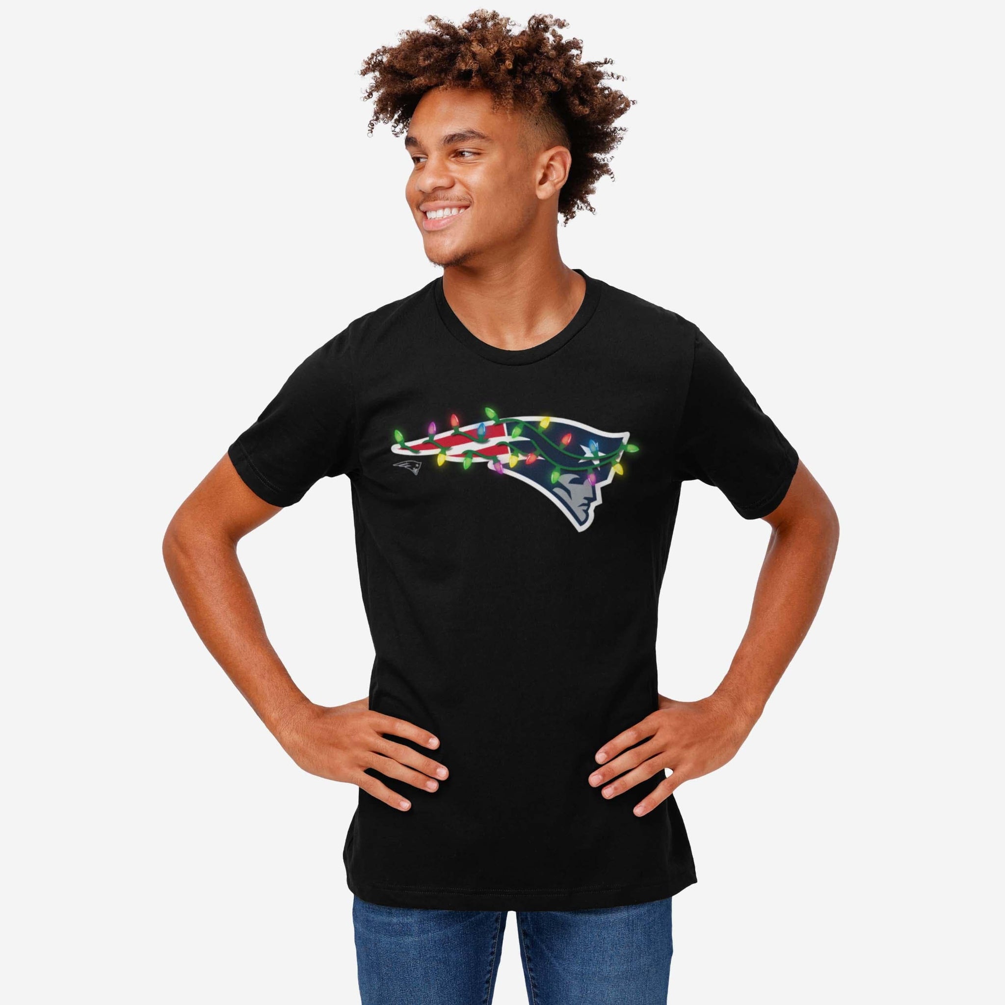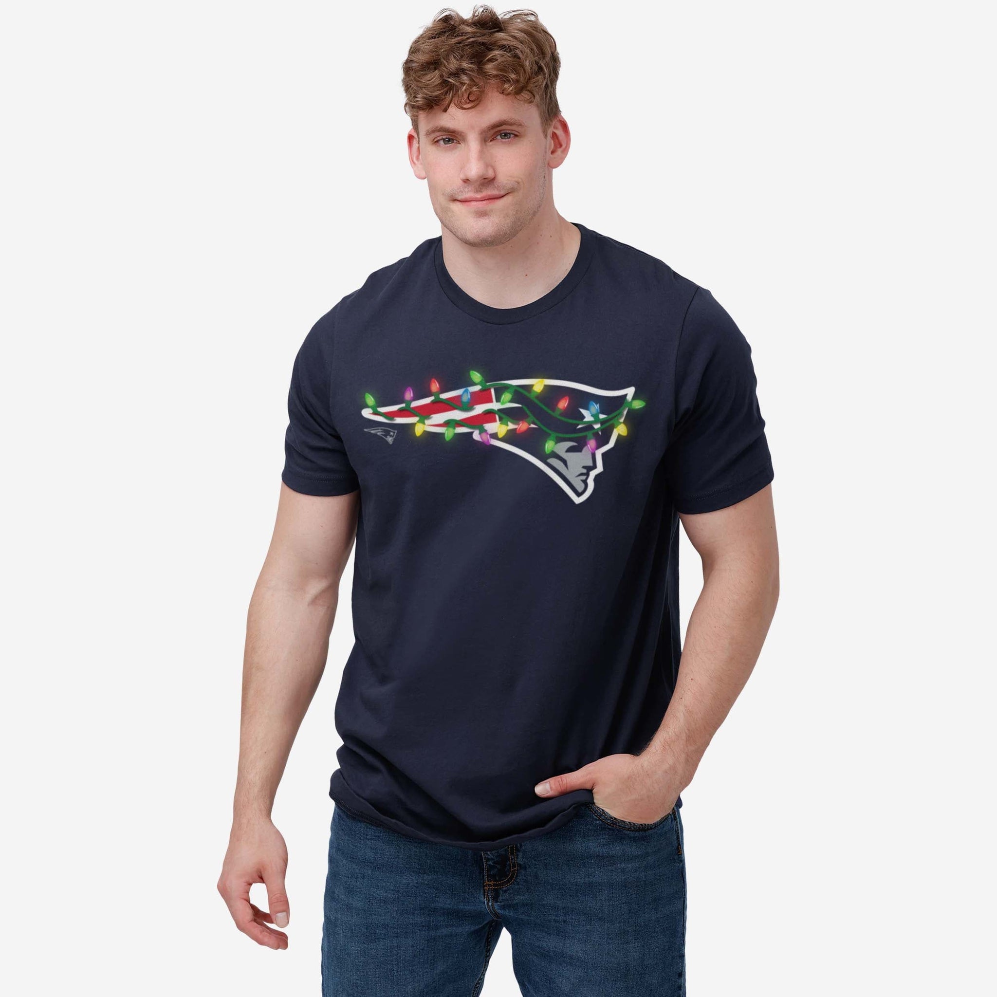Merry, bright, and full of team spirit! Let your fandom light the way to a legendary holiday season with this New England Patriots Primary Logo Holiday Lights T-Shirt.