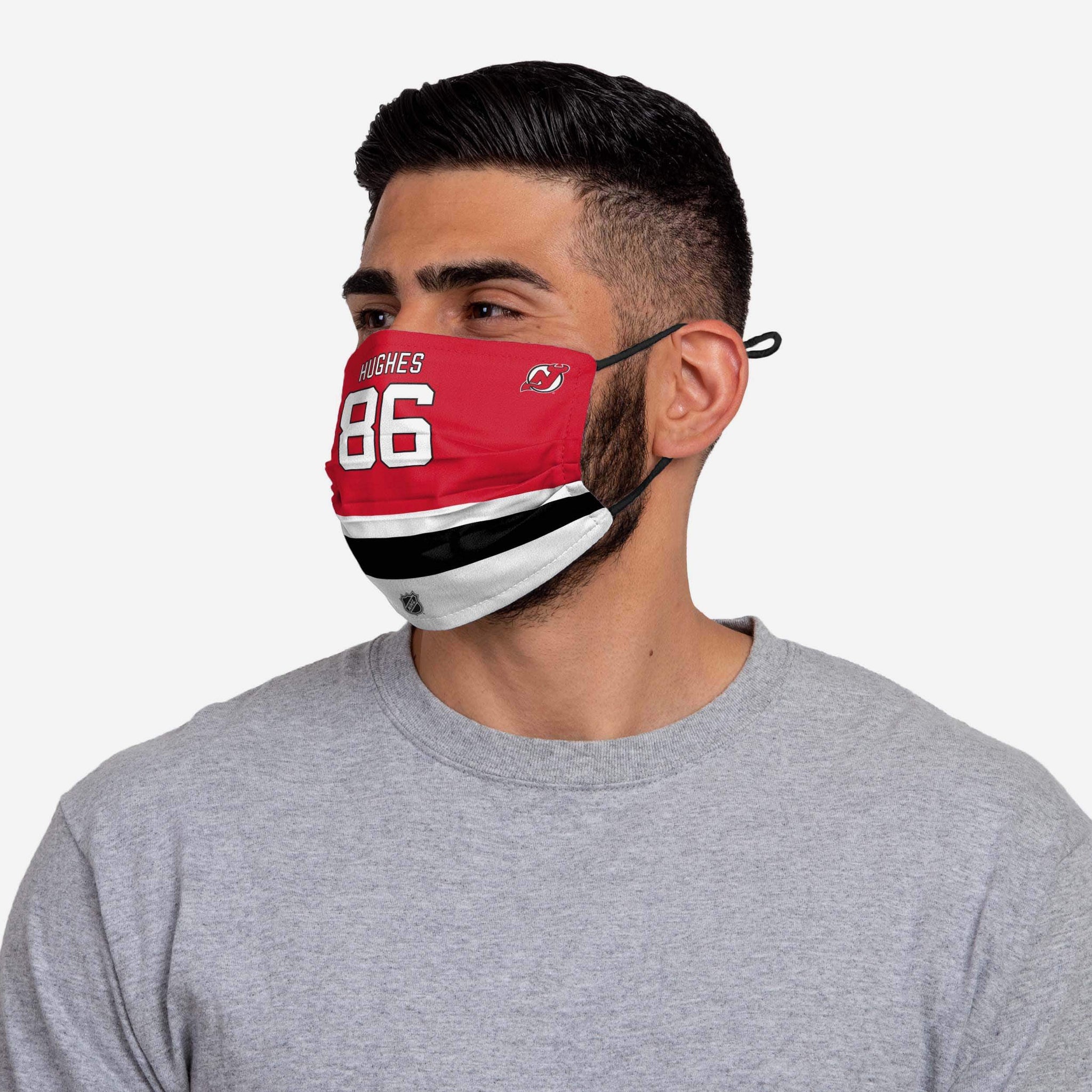 Cover up while you represent your favorite team in this Jack Hughes New Jersey Devils Adjustable face covering!