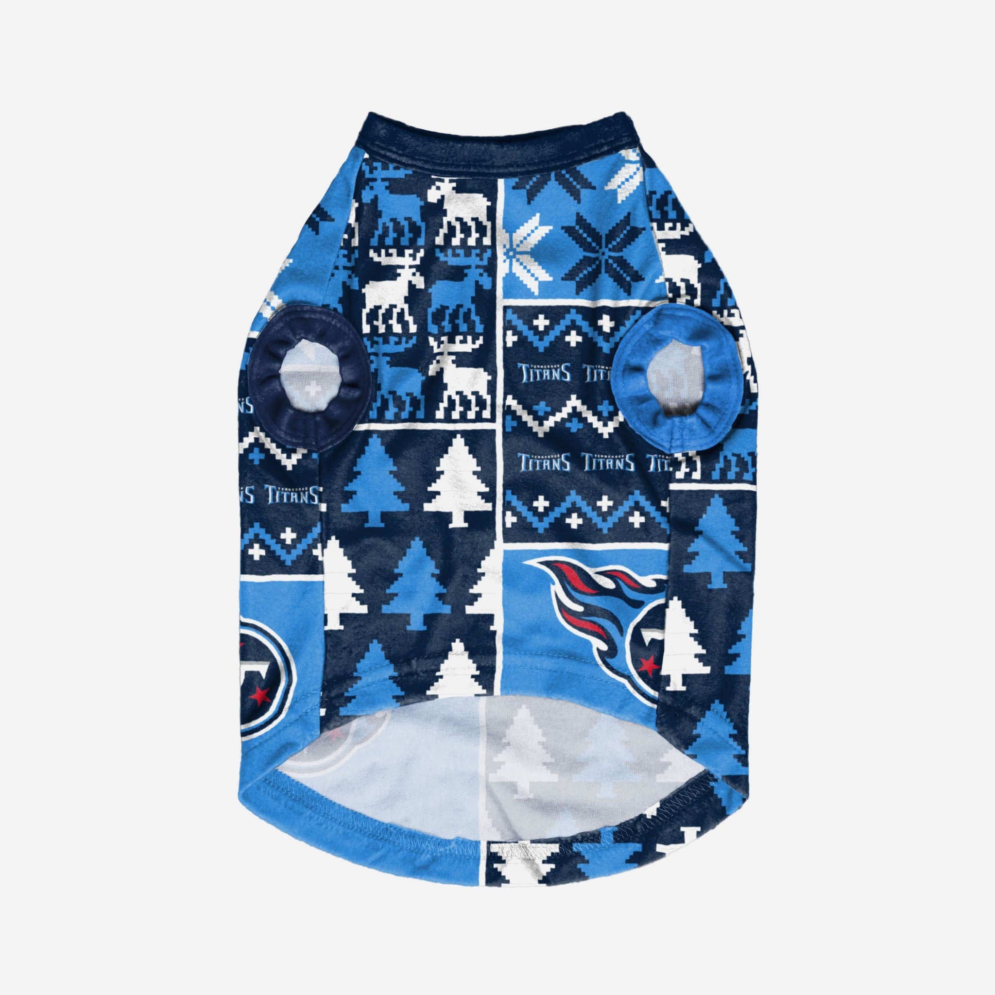 Show off your pet's holiday spirit with this dog sweater! Your good boy (or girl) will love this Tennessee Titans Busy Block Dog Sweater so much, they'll be saying "woof bark awooo" (that's "thank you" in pup language). Don't forget to match your canine's sweater with a set of matching holiday pajamas!