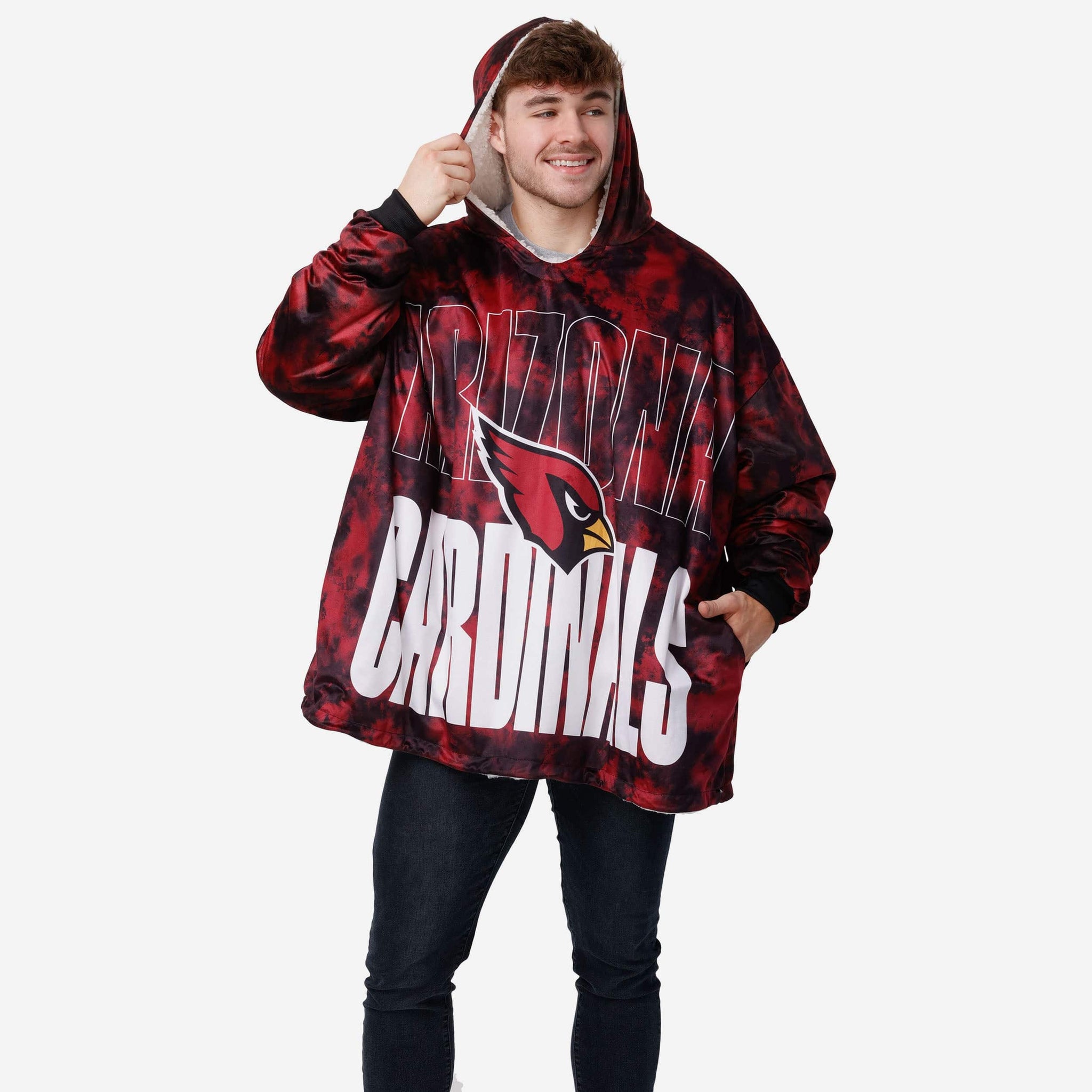 Meet your newest best friend for binge watching. Take your team spirit out of hiding by relaxing in this Arizona Cardinals Bold Logo Camo Hoodeez!