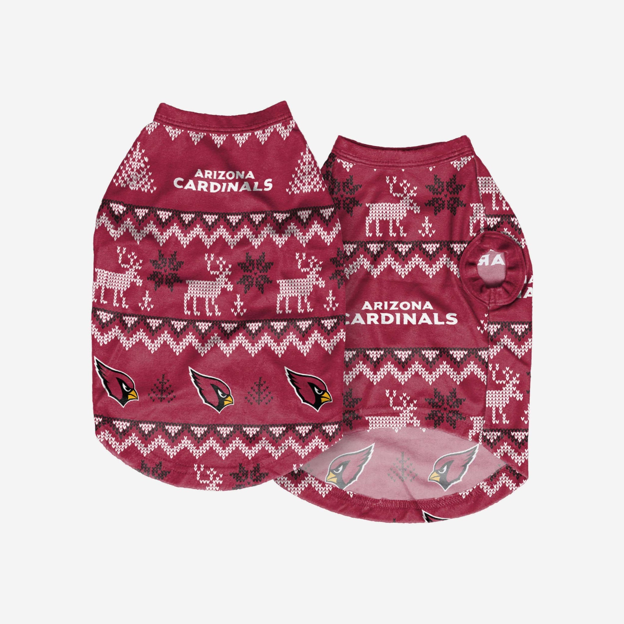 Show off your pet's holiday spirit with this dog sweater! Your good boy (or girl) will love this Arizona Cardinals Dog Family Holiday Ugly Sweater so much, they'll be saying WOOF BARK AWOOO (that's THANK YOU in pup language). Don't forget to match your canine's sweater with a set of matching holiday pajamas!