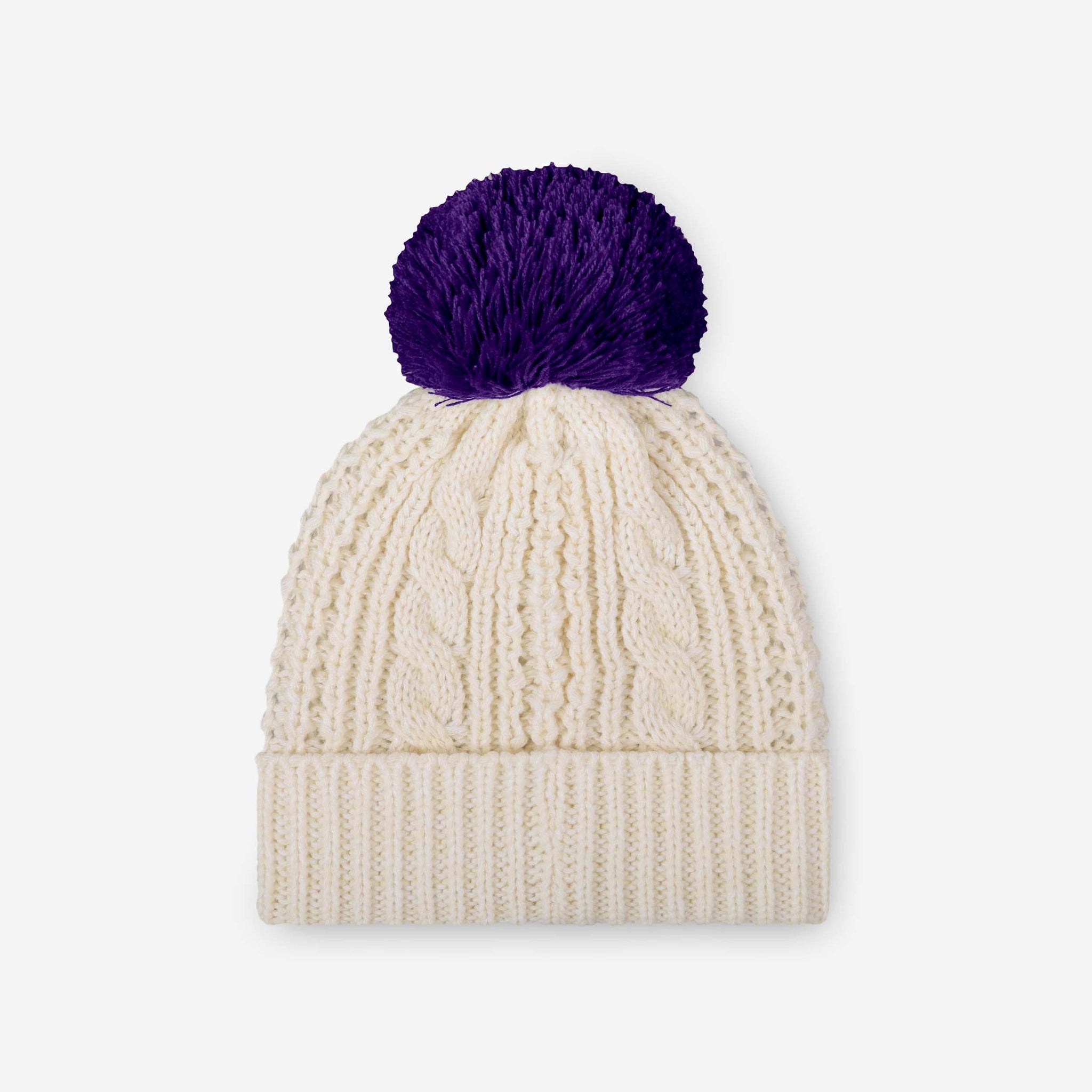 Baltimore Ravens Womens Primary Logo White Cable Knit Pom Beanie