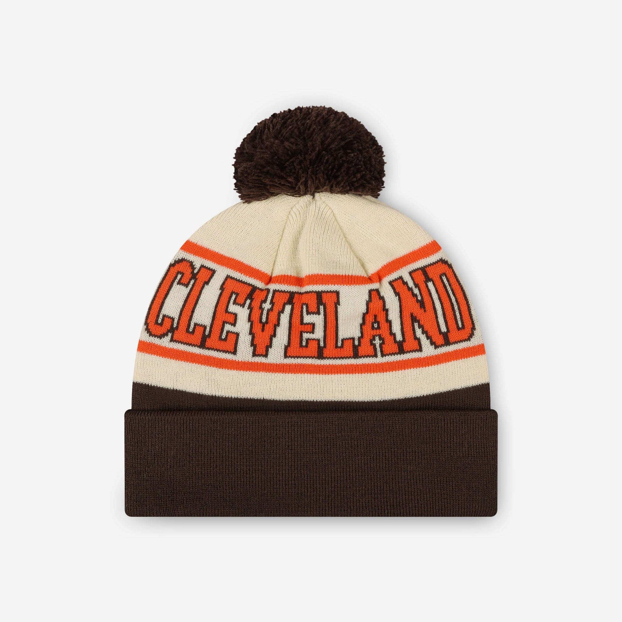 Cleveland Browns Heritage Stripe Retro Logo Pom Beanie