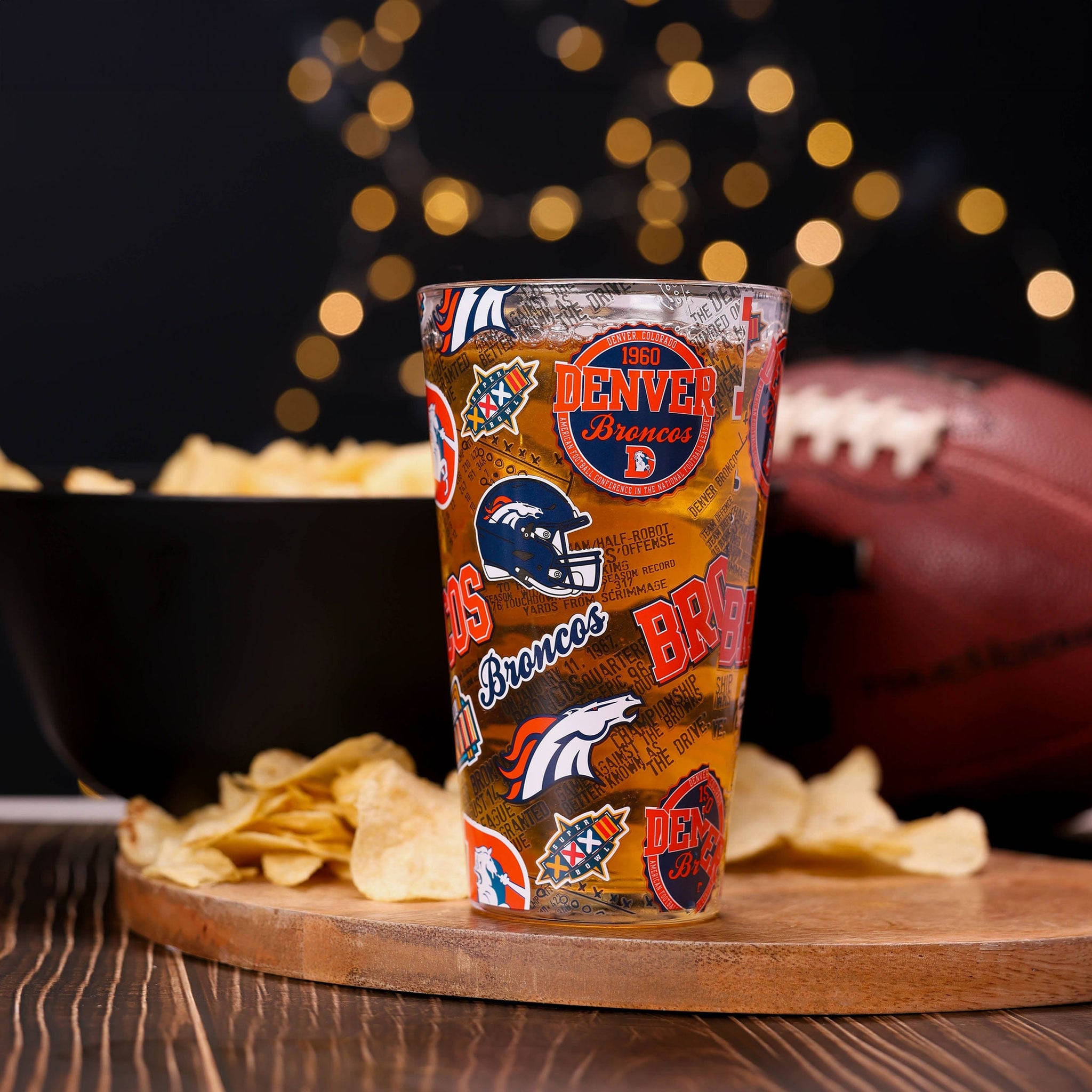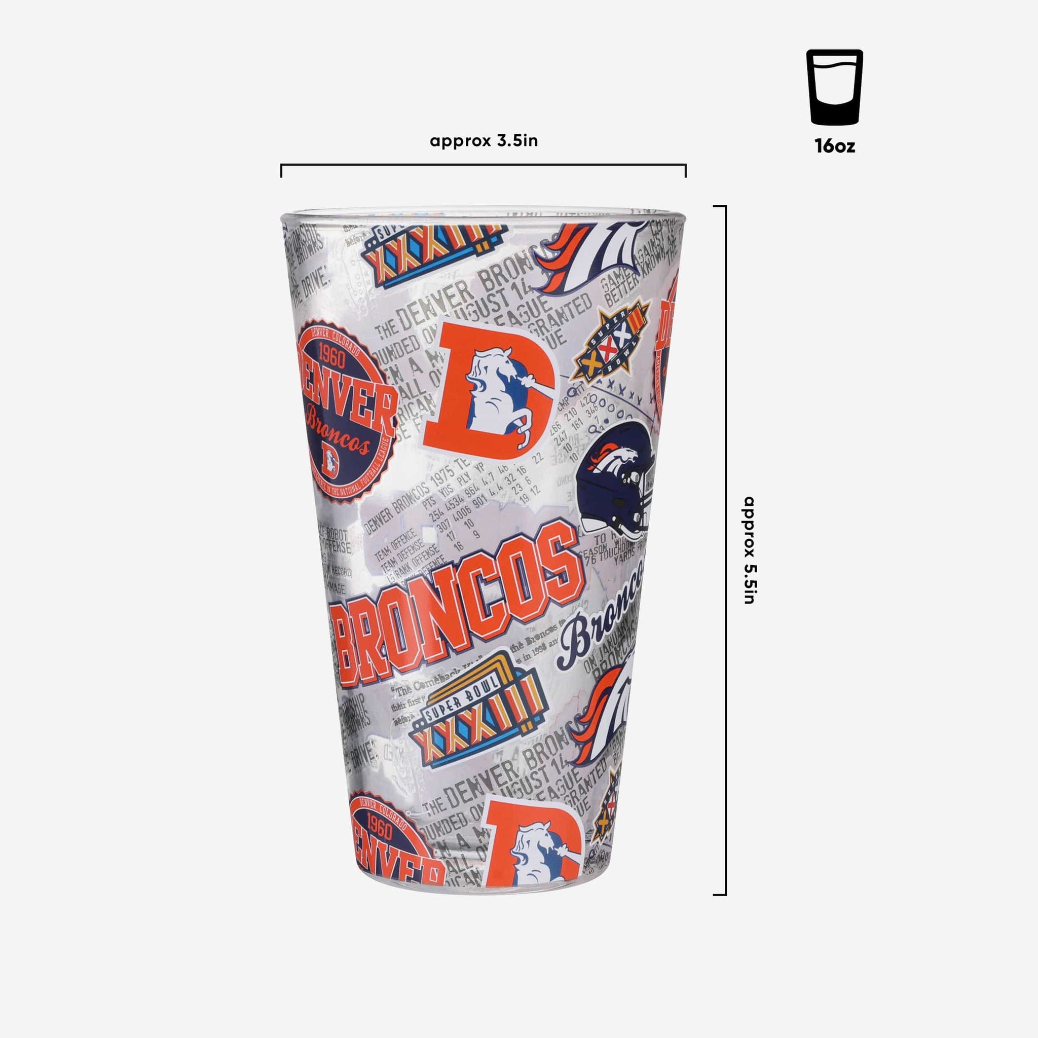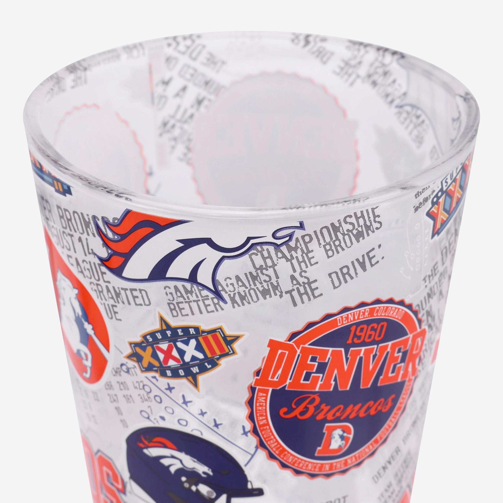 A blast from the past served in one fine pint. Introducing the Denver Broncos Historic Print Pint Glass. Let's make history.