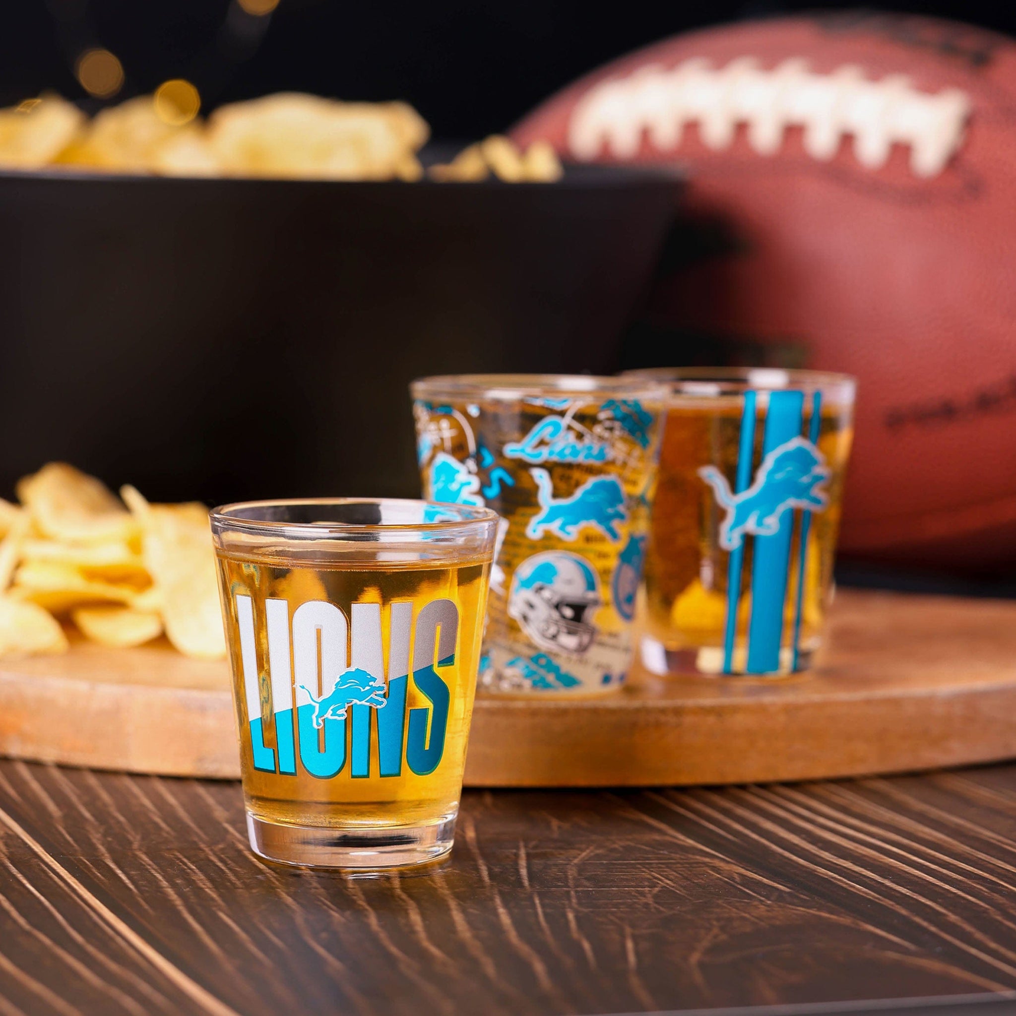 Gameday meets the night life. The Detroit Lions 3 Pack Shot Glass is the perfect addition to the fancave of the mixologist in your life.