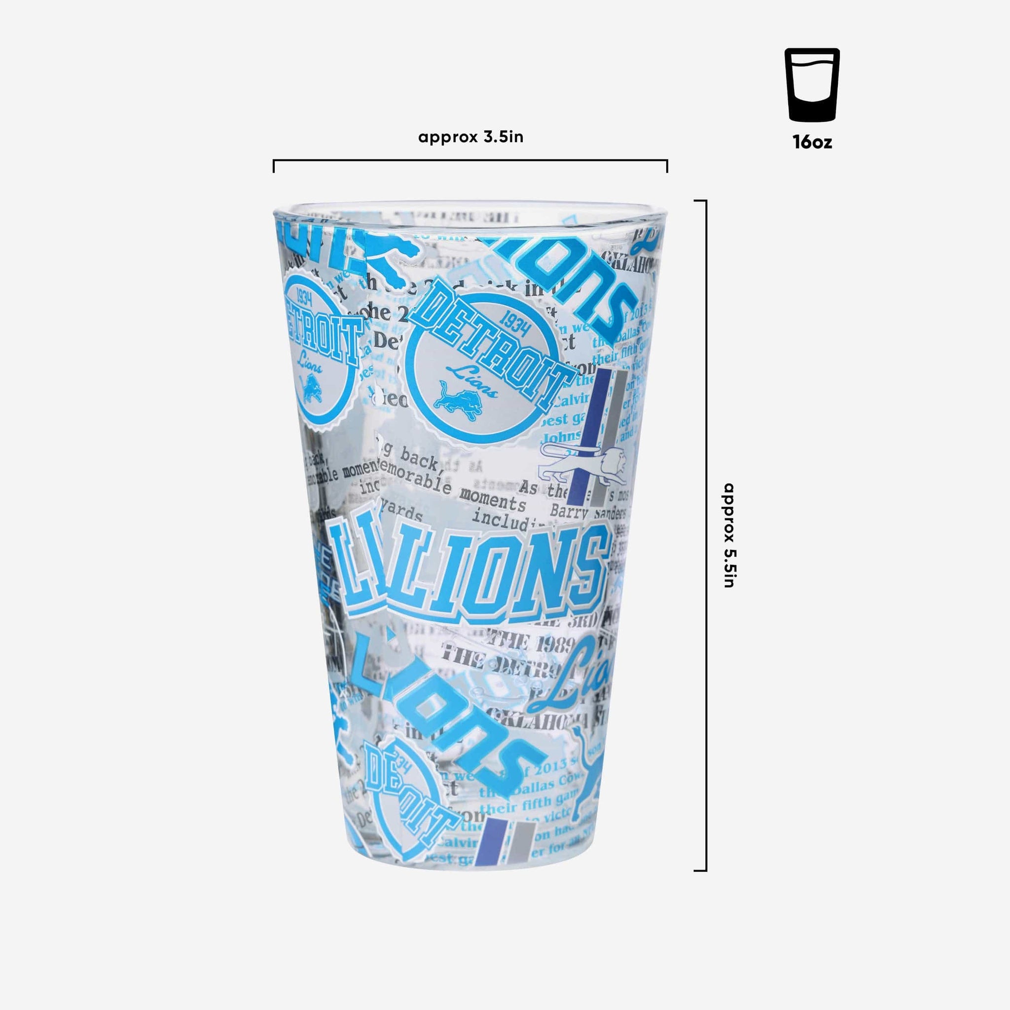 A blast from the past served in one fine pint. Introducing the Detroit Lions Historic Print Pint Glass. Let's make history.