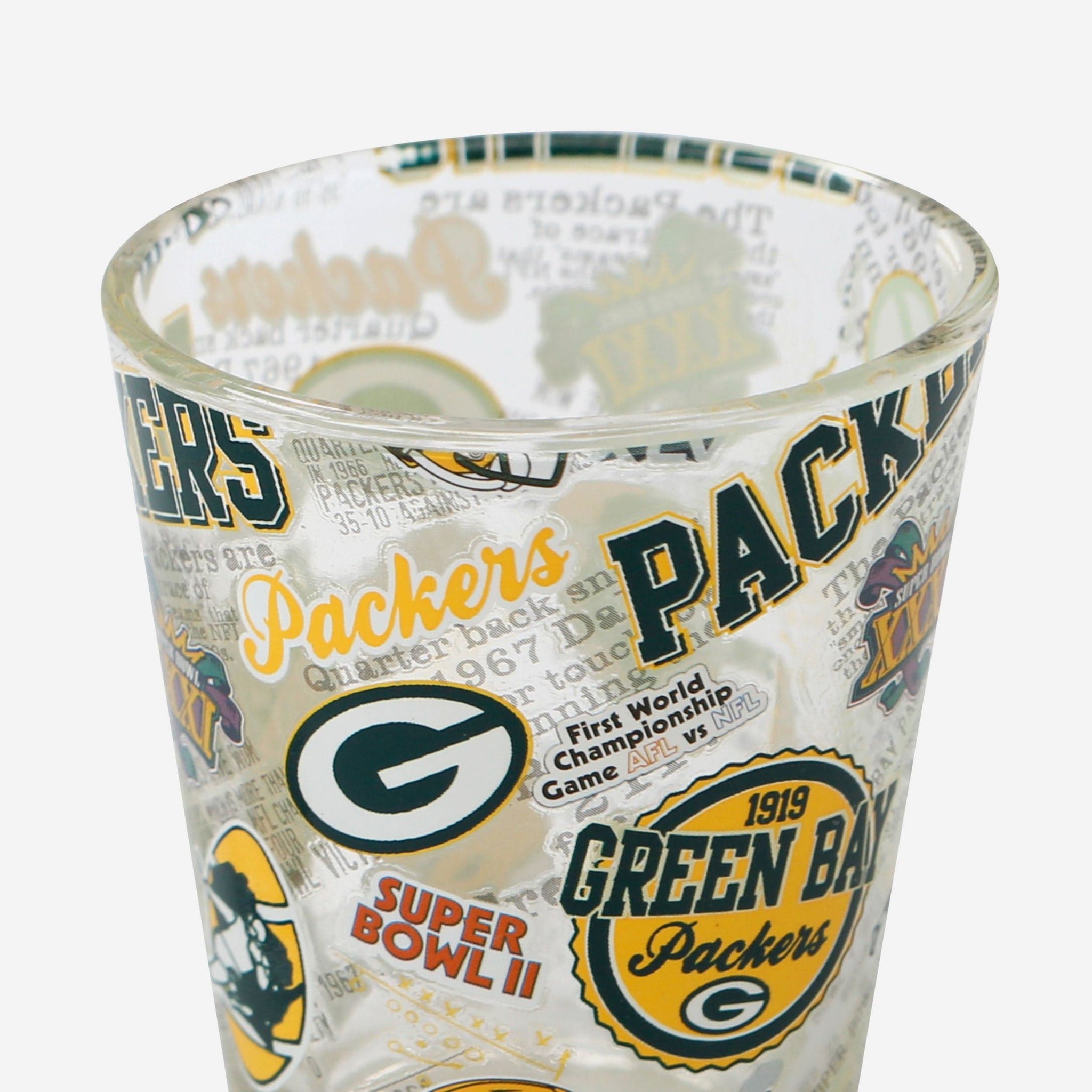 - Third glass features all-over repeat design with team logo displays and thematic team-specific elements throughout that will really get the party started