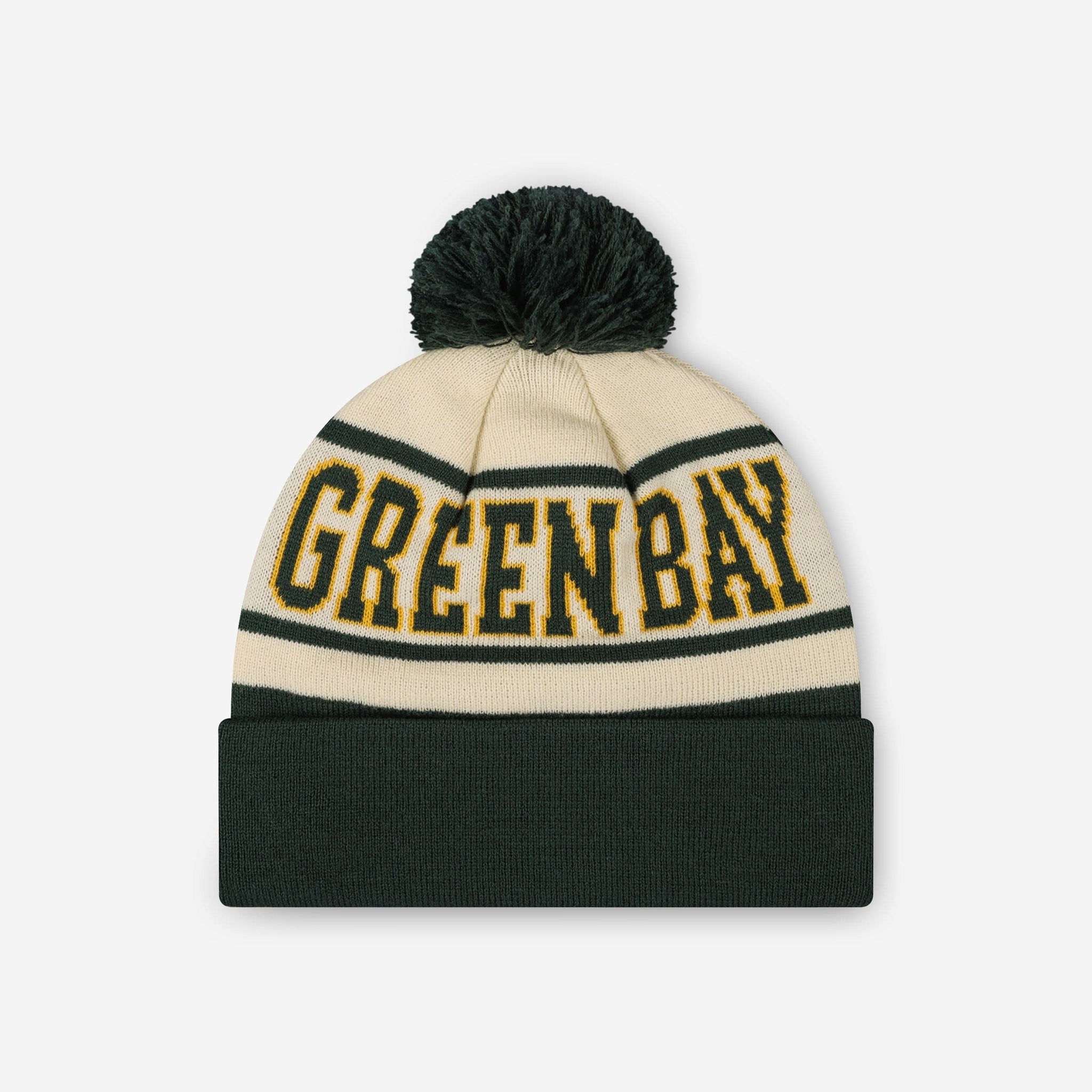 Green Bay Packers Heritage Stripe Retro Logo Pom Beanie