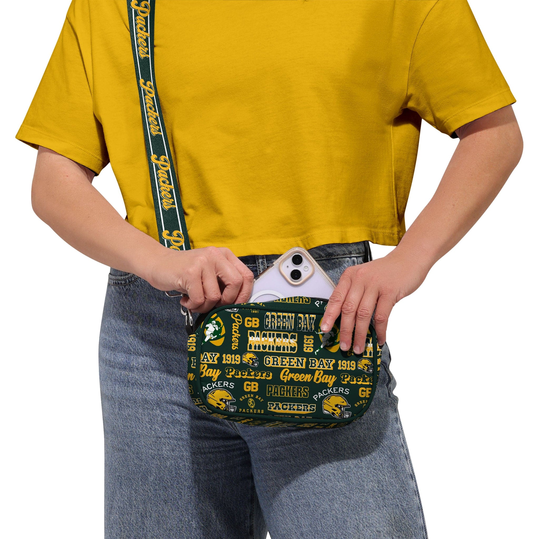 Green Bay Packers Repeat Retro Print Nylon Crossbody Bag