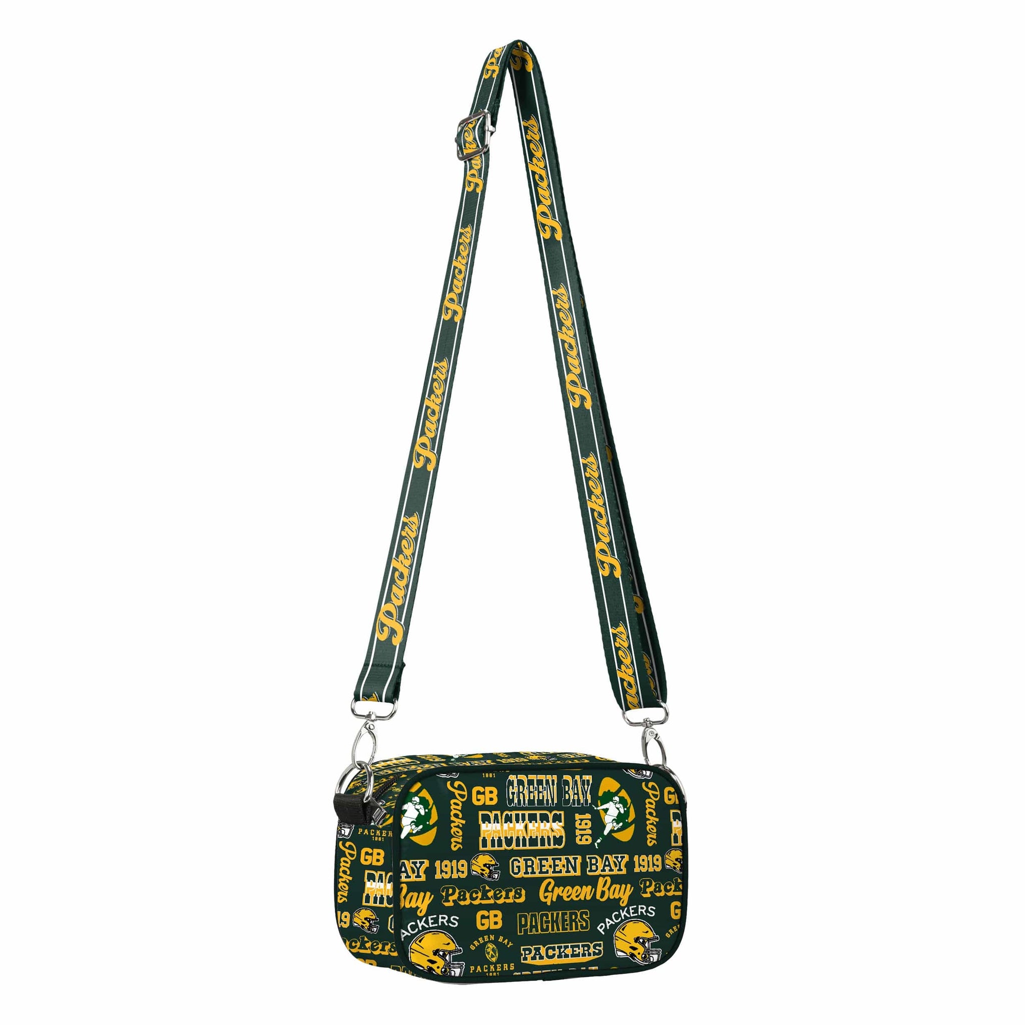Over your shoulder and off to the game! Vintage vibes meet modern utility with the Green Bay Packers Repeat Retro Print Nylon Crossbody Bag.