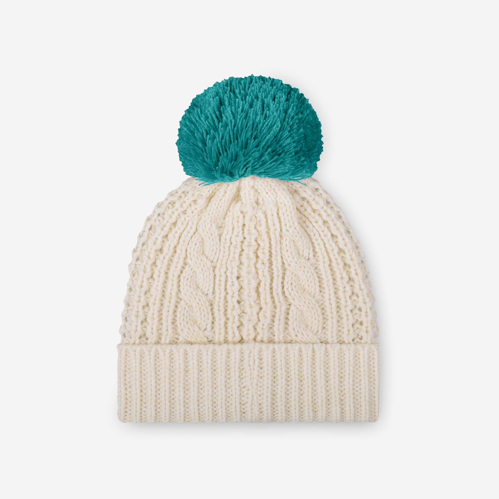 Miami Dolphins Womens Primary Logo White Cable Knit Pom Beanie