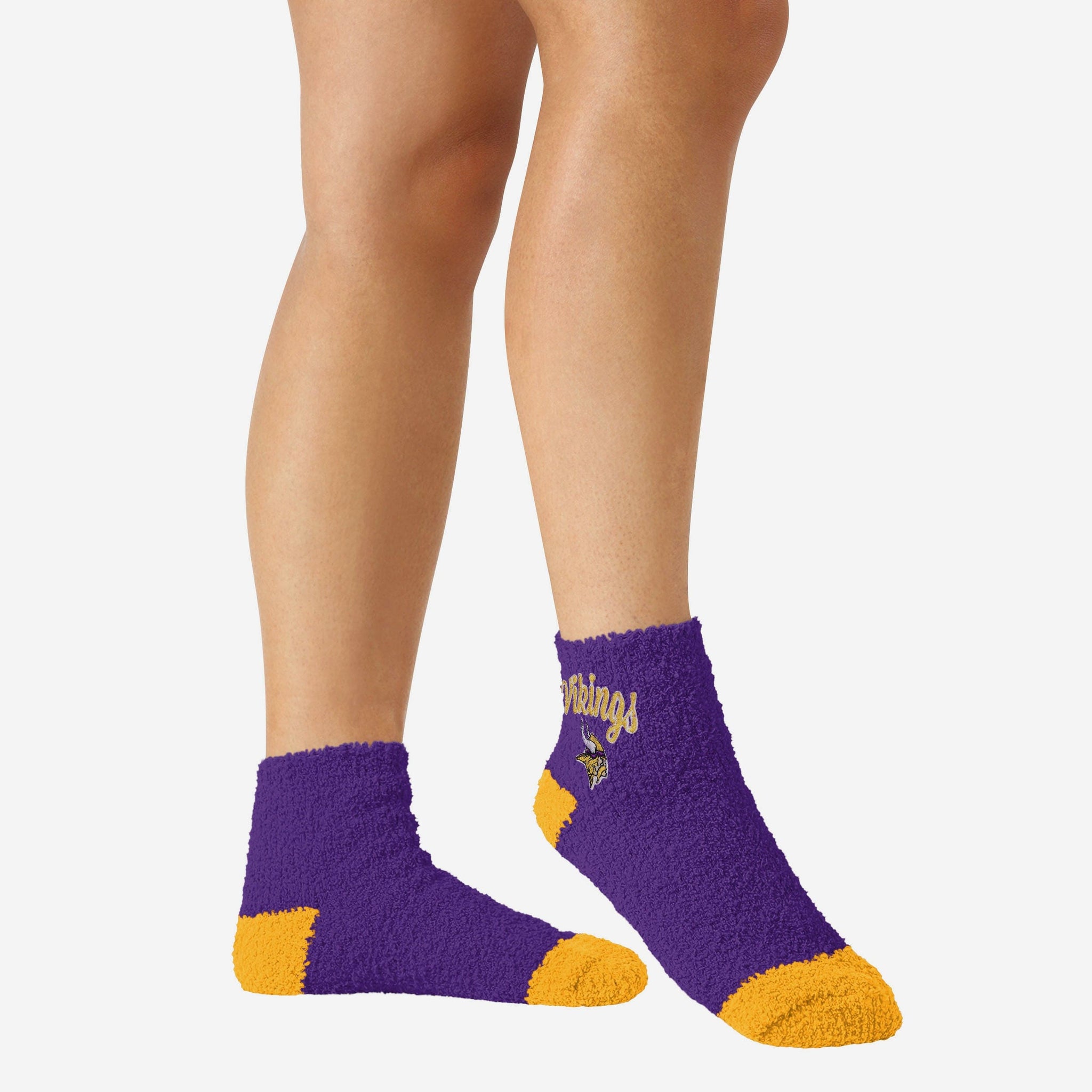 Minnesota Vikings 2 Pack Womens Script Logo Fuzzy Ankle Socks FOCO - FOCO.com