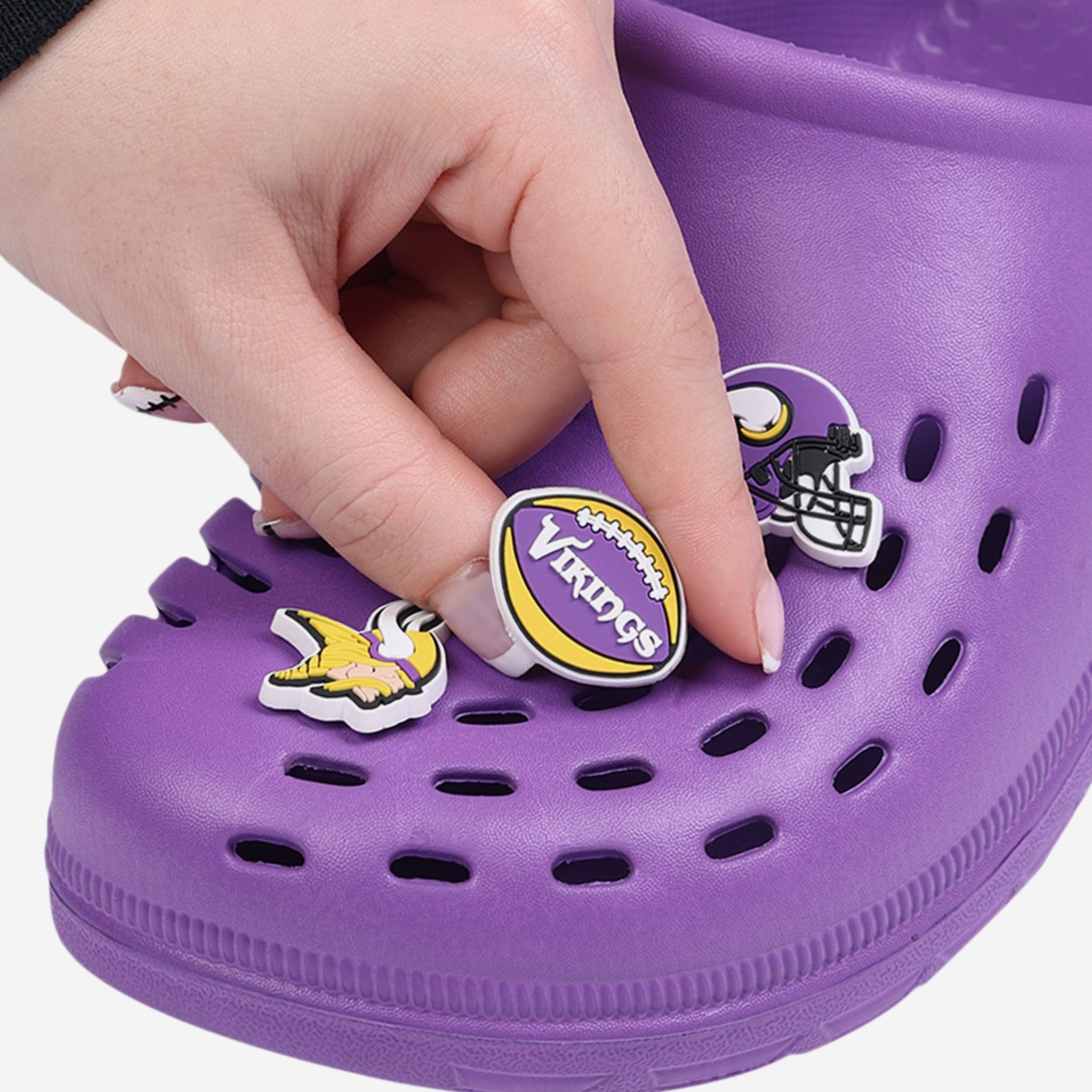 Footwear meets fashion in a whole new way! Taking your fit from drab to fab is as simple as snapping in these Minnesota Vikings 6 Pack Team Clog Charms.