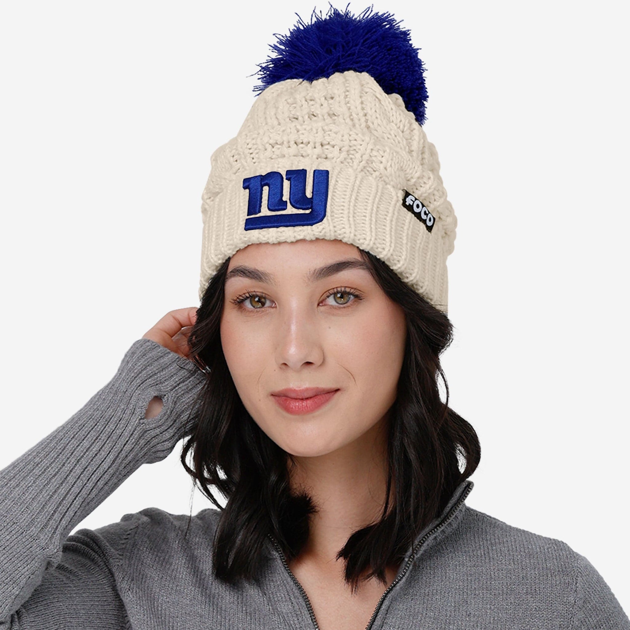 New York Giants Womens Primary Logo White Cable Knit Pom Beanie FOCO - FOCO.com