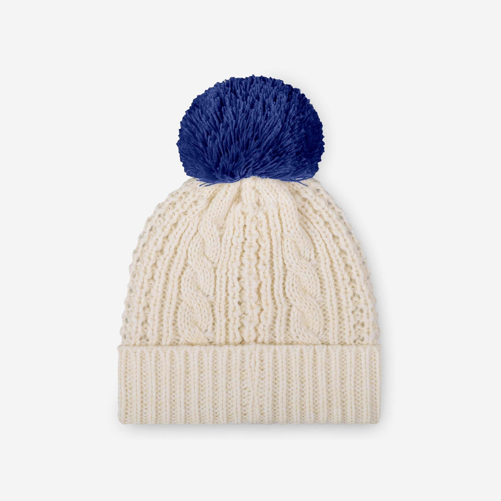 New York Giants Womens Primary Logo White Cable Knit Pom Beanie