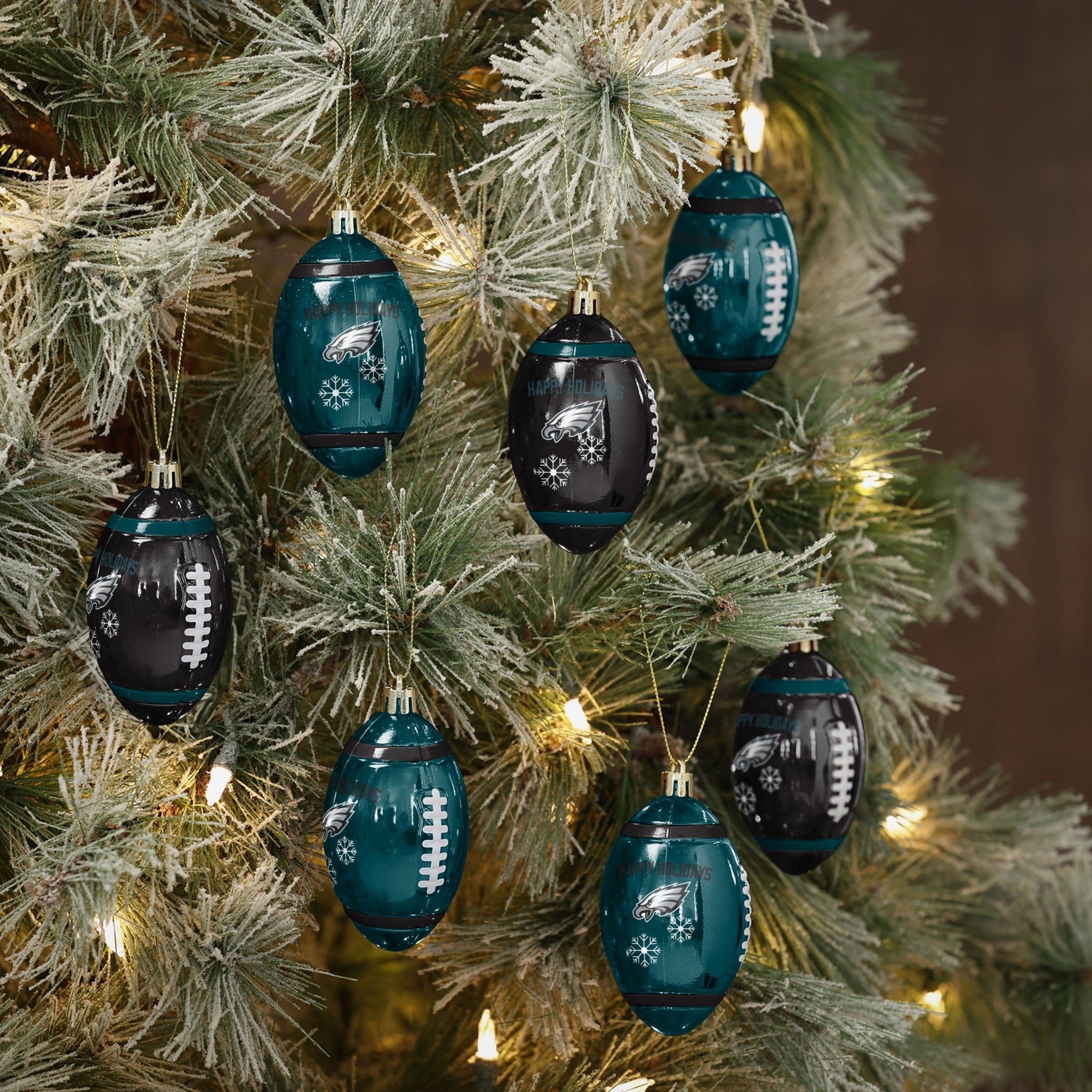Your tree. Your team. And a holiday full of fandom! You’ll be ready to deck the halls with gridiron glory with the Philadelphia Eagles 12 Pack Football Ornament Set.