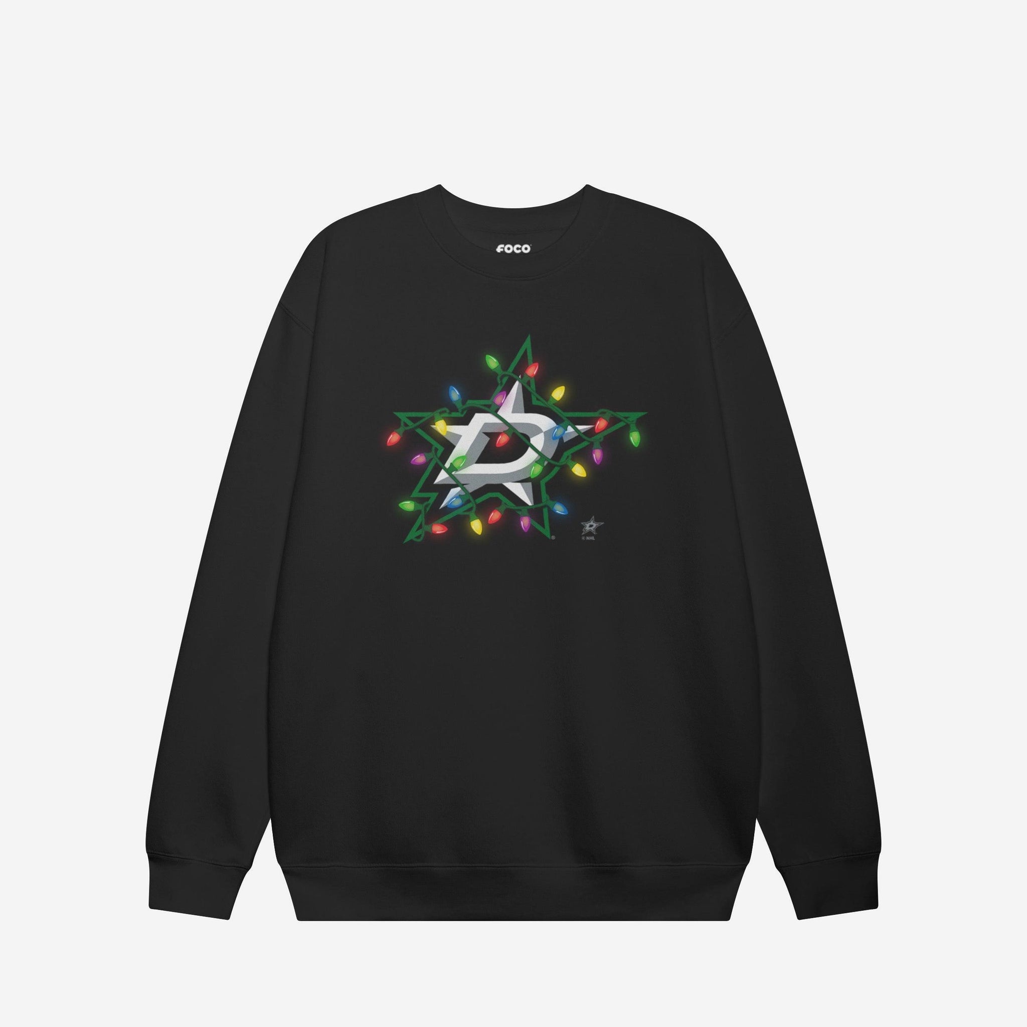 Dallas Stars Primary Logo Holiday Lights Crew Neck Sweatshirt FOCO S - FOCO.com
