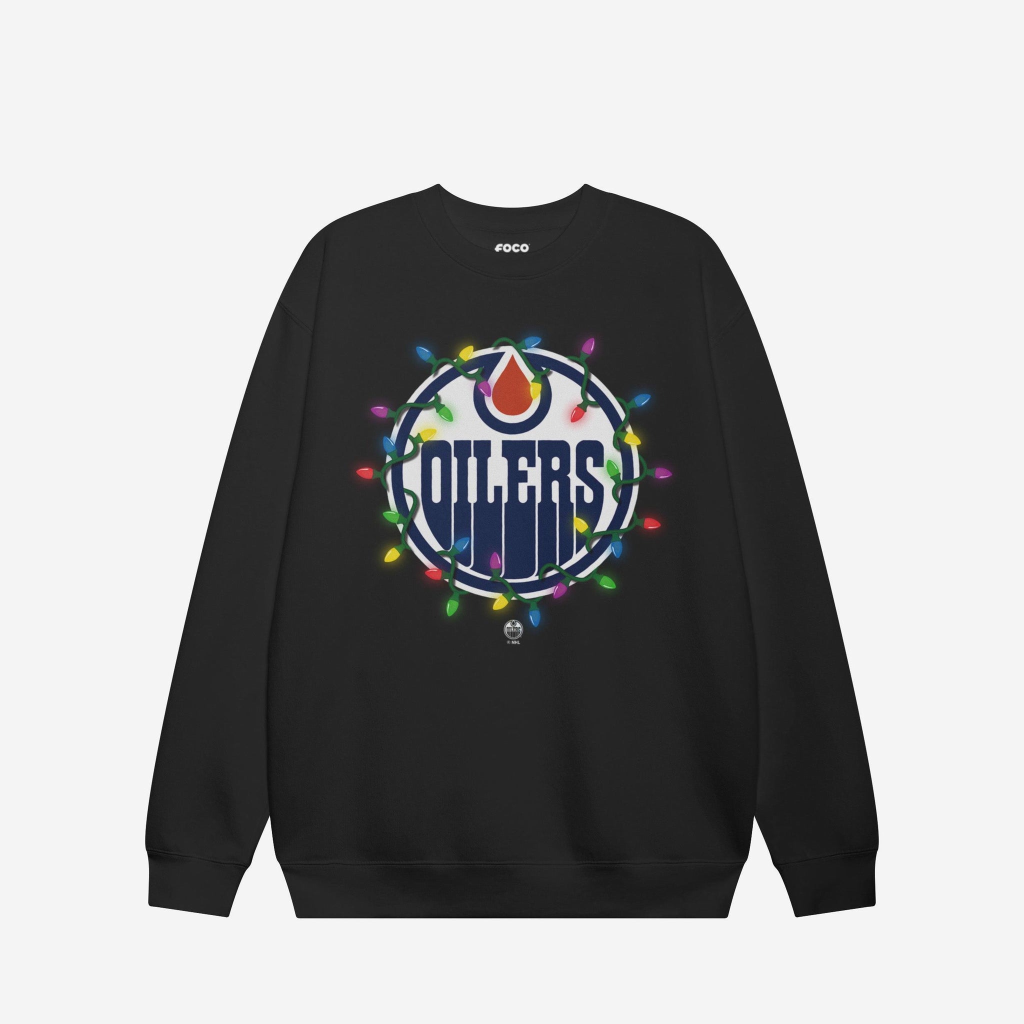 Edmonton Oilers Primary Logo Holiday Lights Crew Neck Sweatshirt FOCO S - FOCO.com