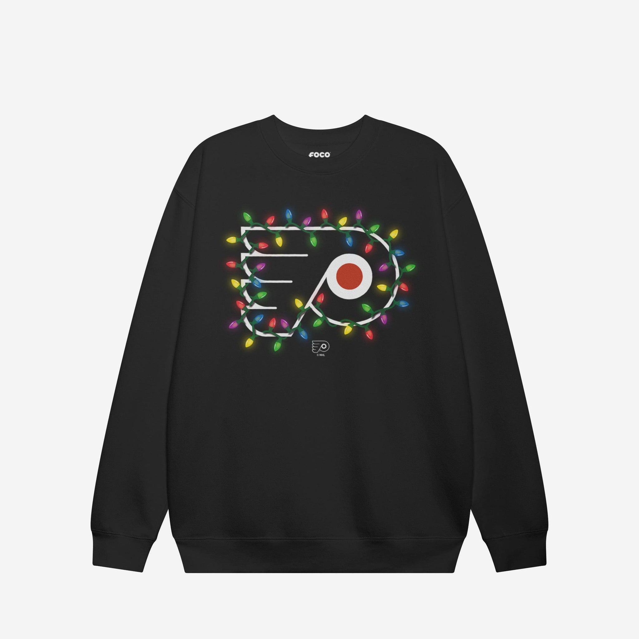 Philadelphia Flyers Primary Logo Holiday Lights Crew Neck Sweatshirt FOCO S - FOCO.com