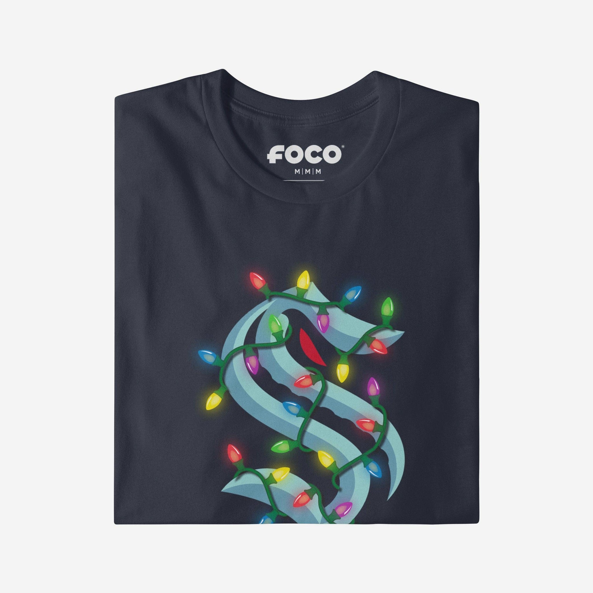 - Design: This traditional t-shirt features Christmas lights displayed around a bold team logo display on the front so you can let your fandom light the way to a very merry season
